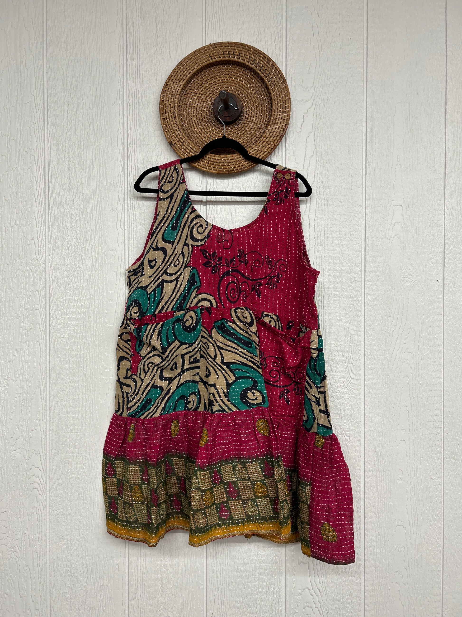 This sweet silhouette is crafted from our ultra lux Kantha stitched cotton sari. The Kantha Meadow Mini Dress features a button closure on the strap, deep interior front pockets, and a tiered bodice for extra twirling dimension!