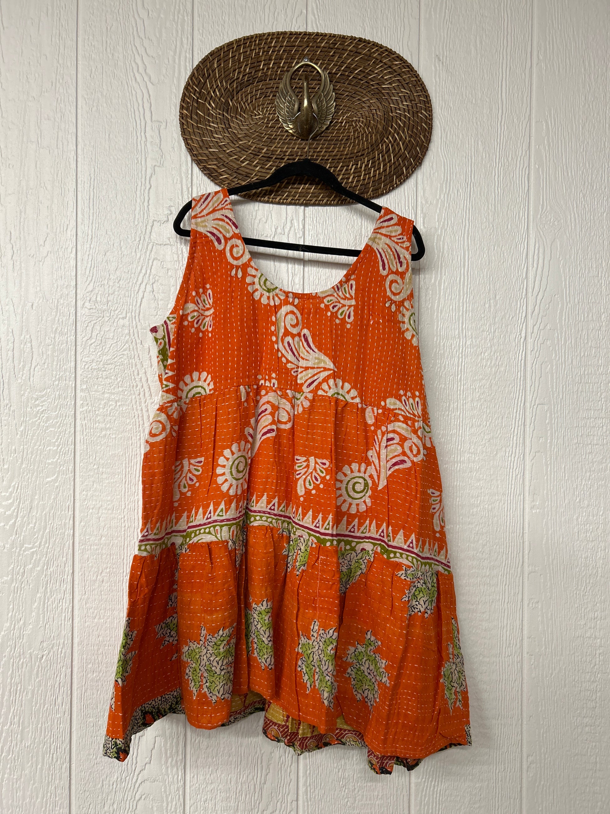 Our vintage styles have lived a full life before becoming the designs in our shop. Fabrics may have small threads or holes in the layers. Color inconsistency or small stains may be present. The saris are sewn together and extend the life of each design. Imperfections should be celebrated.
