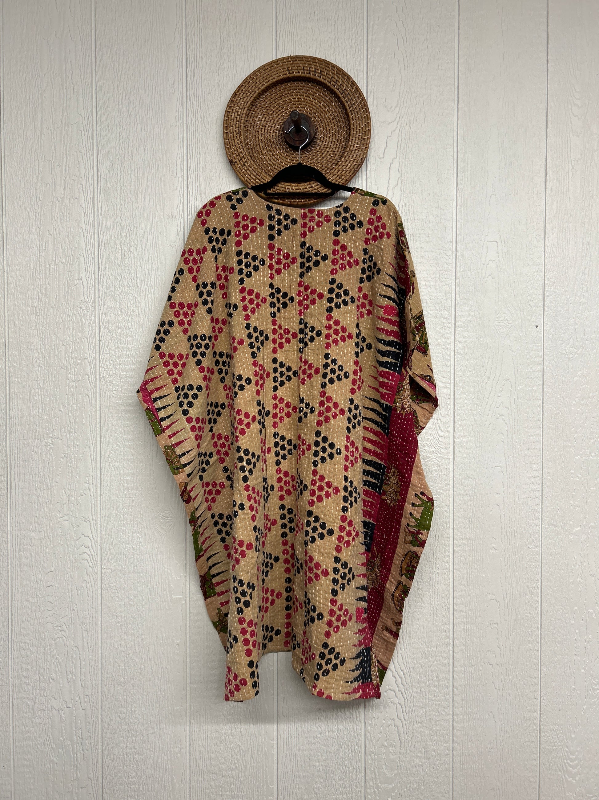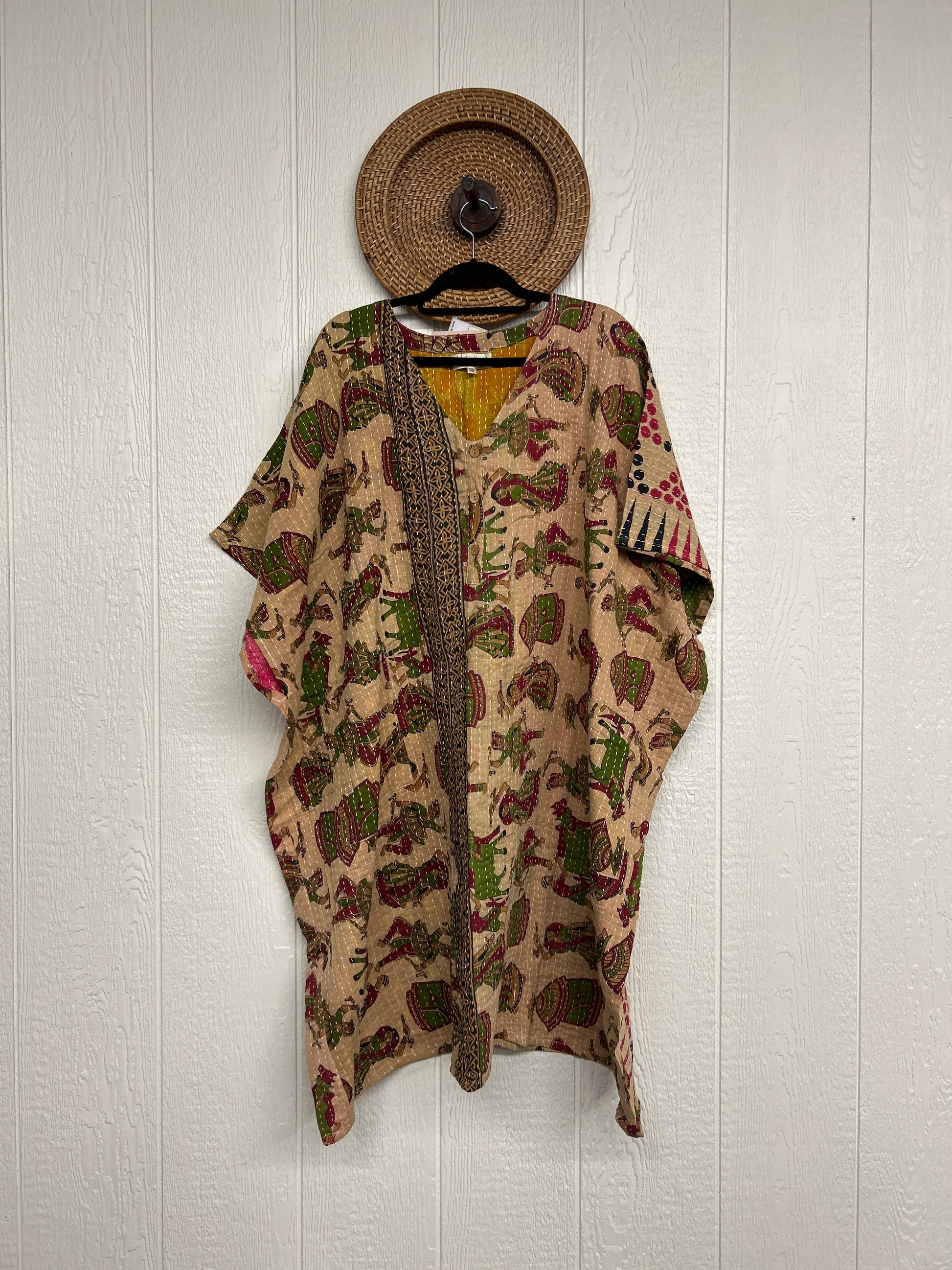Crafted in our lux vintage Kantha stitch cotton sari, this floaty muu is in a new midi length with buttons at the neckline and slouchy exterior pockets.