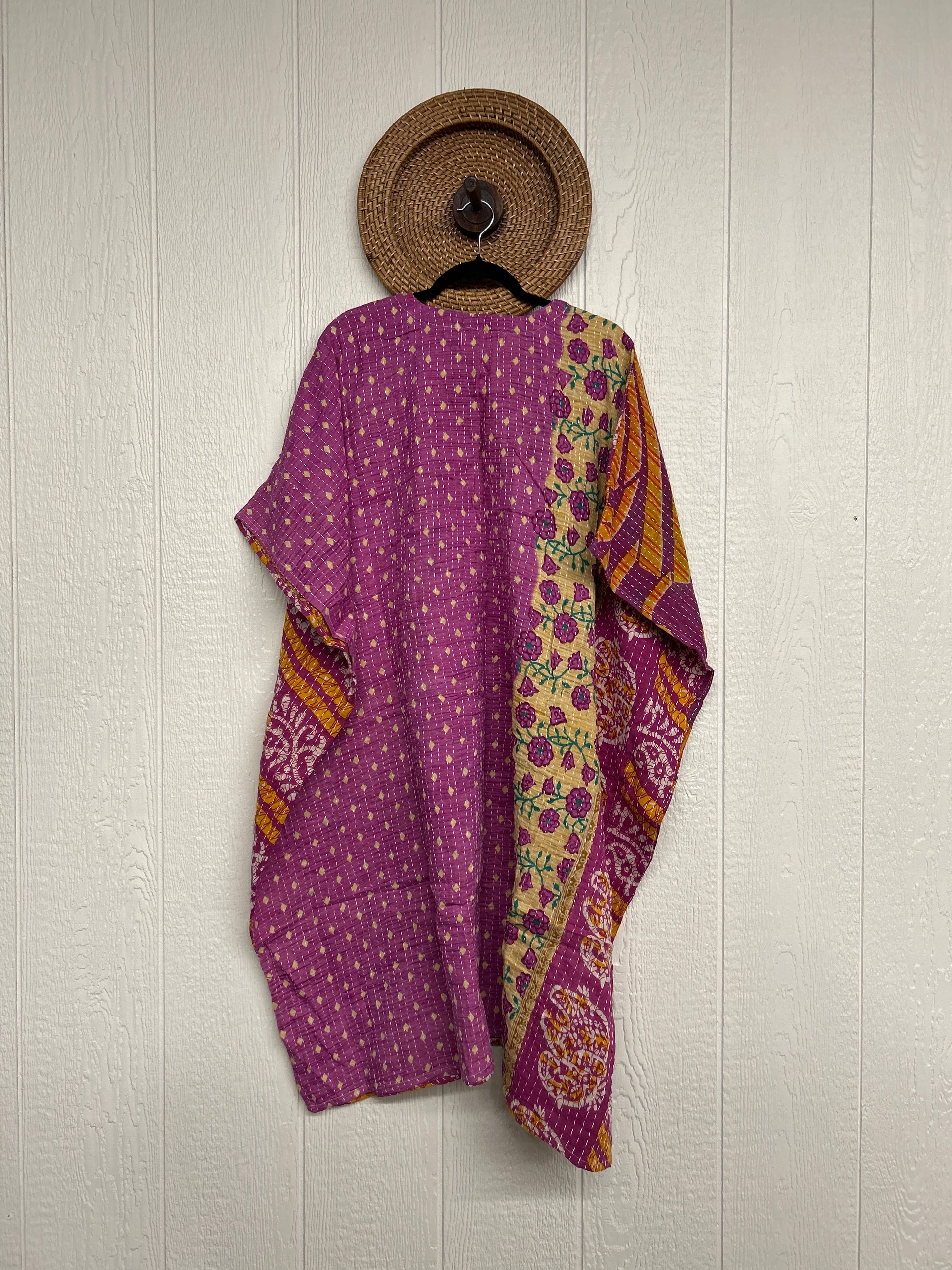 Crafted in our lux vintage Kantha stitch cotton sari, this floaty muu is in a new midi length with buttons at the neckline and slouchy exterior pockets.