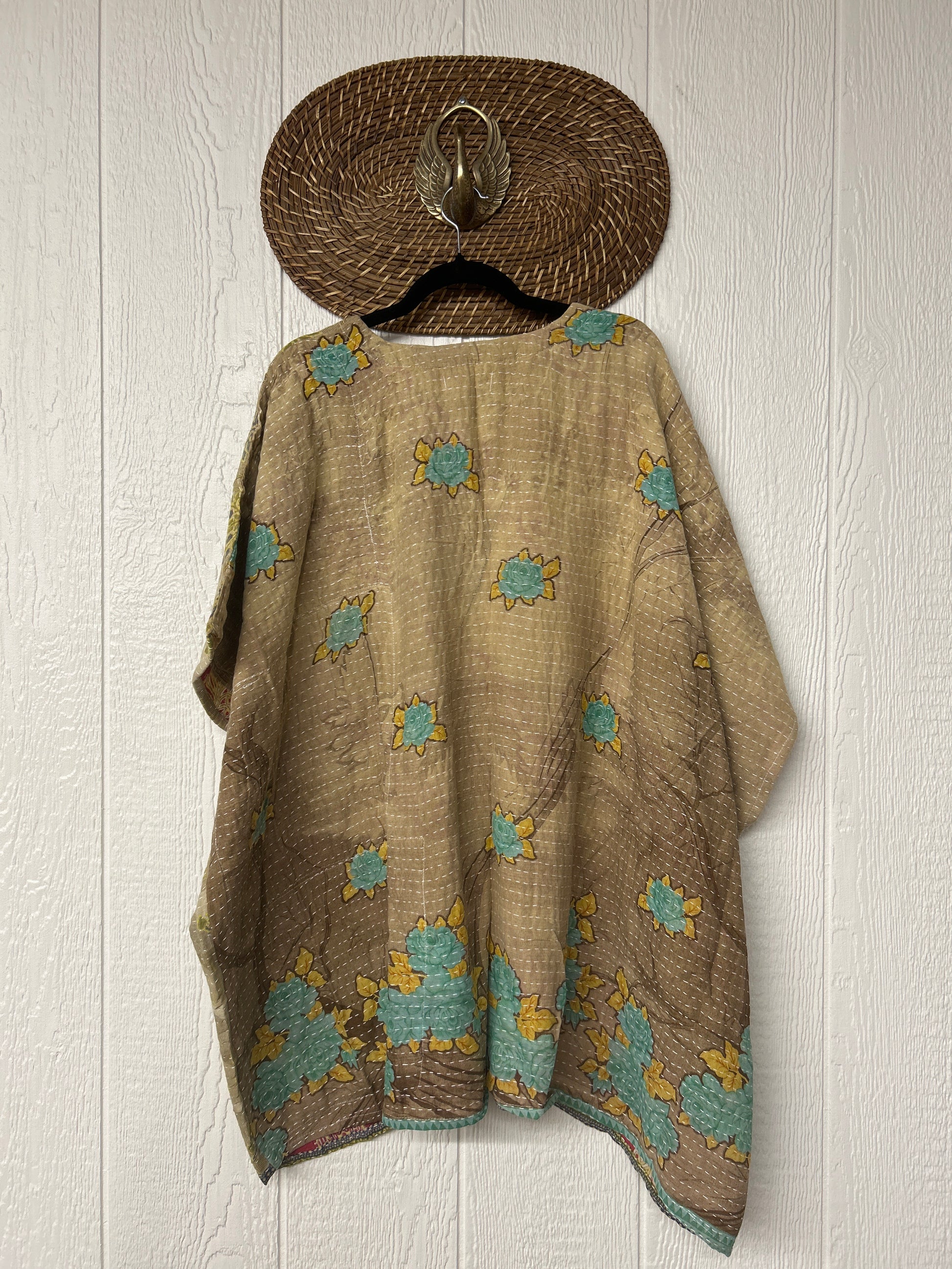 Disclosure: Our vintage styles have lived a full life before becoming the designs in our shop. Fabrics may have small threads or holes in the layers. Color inconsistency or small stains may be present. The saris are sewn together and extend the life of each design. Imperfections should be celebrated.