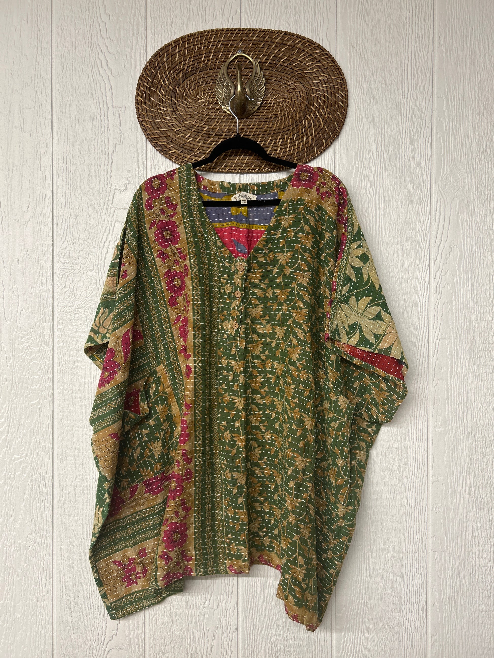 Disclosure: Our vintage styles have lived a full life before becoming the designs in our shop. Fabrics may have small threads or holes in the layers. Color inconsistency or small stains may be present. The saris are sewn together and extend the life of each design. Imperfections should be celebrated.