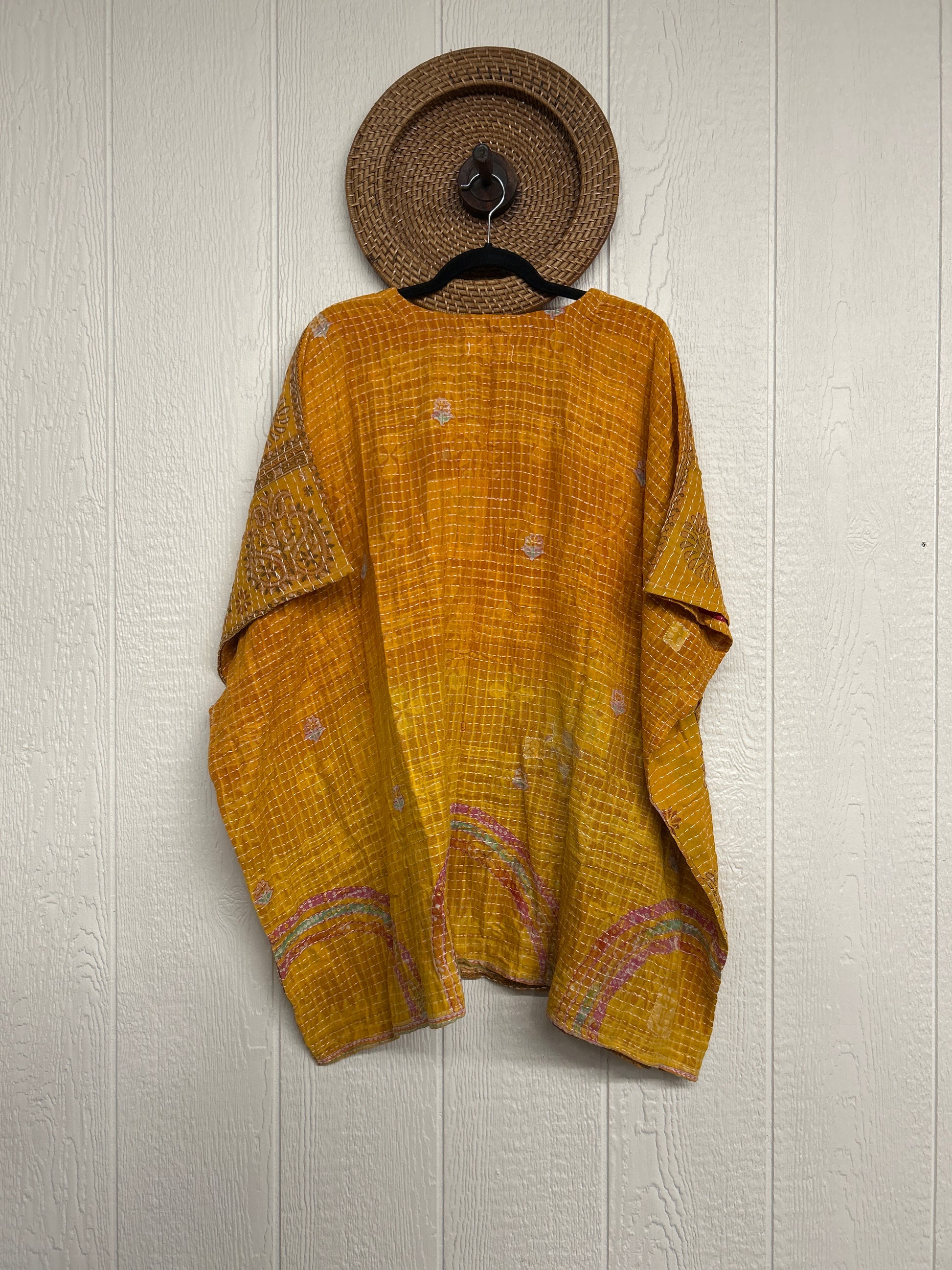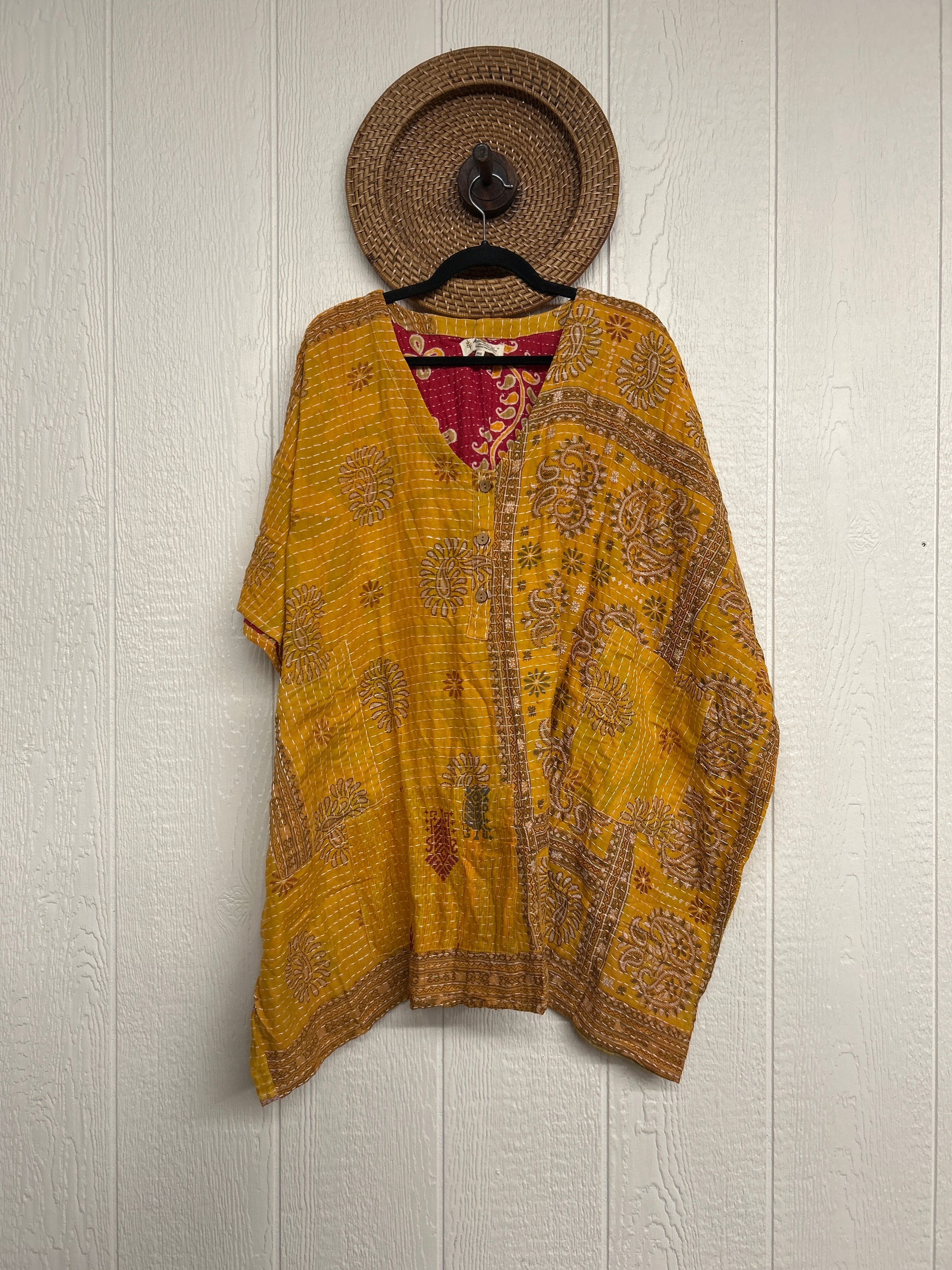 Disclosure: Our vintage styles have lived a full life before becoming the designs in our shop. Fabrics may have small threads or holes in the layers. Color inconsistency or small stains may be present. The saris are sewn together and extend the life of each design. Imperfections should be celebrated.