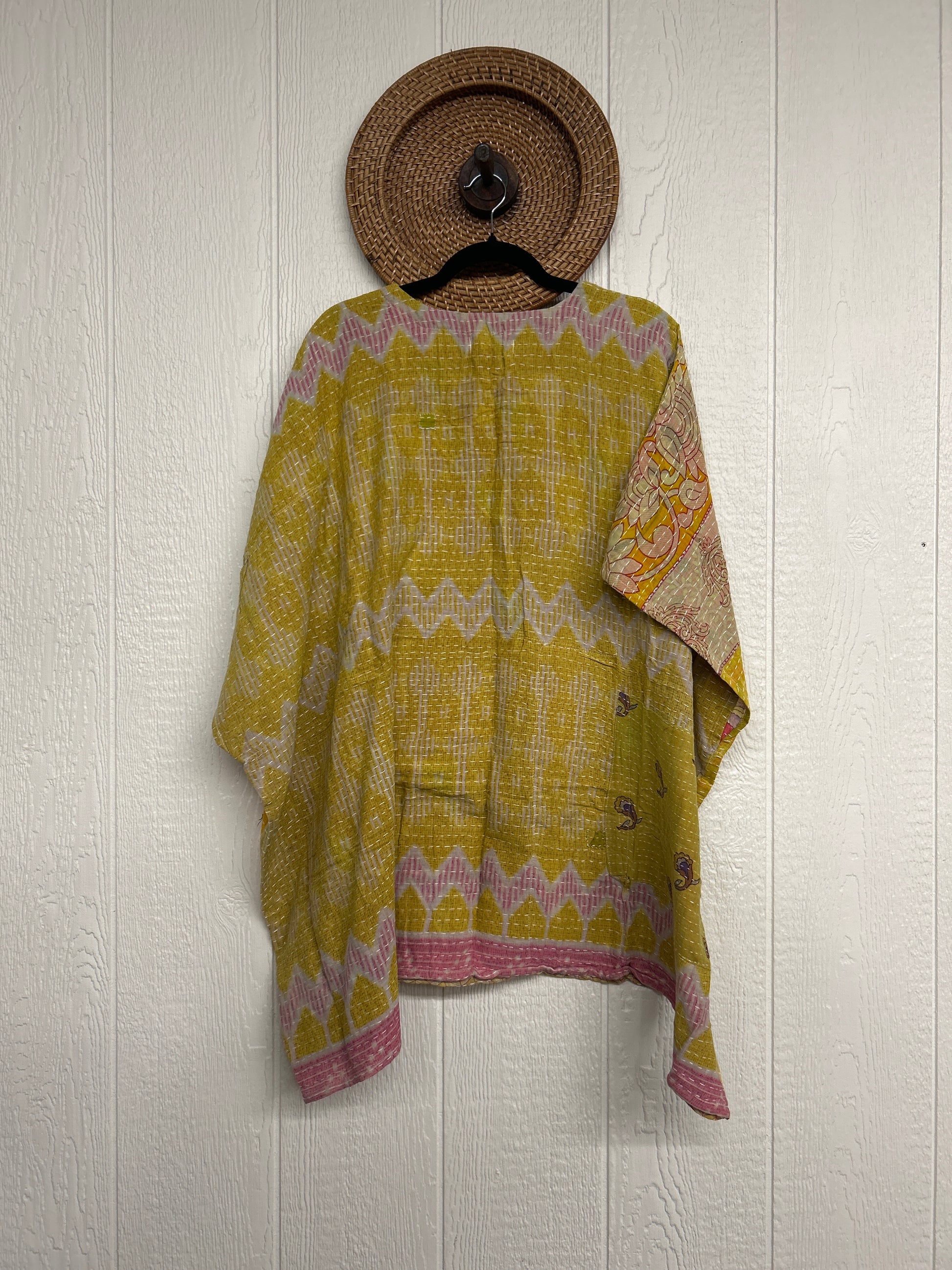 Disclosure: Our vintage styles have lived a full life before becoming the designs in our shop. Fabrics may have small threads or holes in the layers. Color inconsistency or small stains may be present. The saris are sewn together and extend the life of each design. Imperfections should be celebrated.