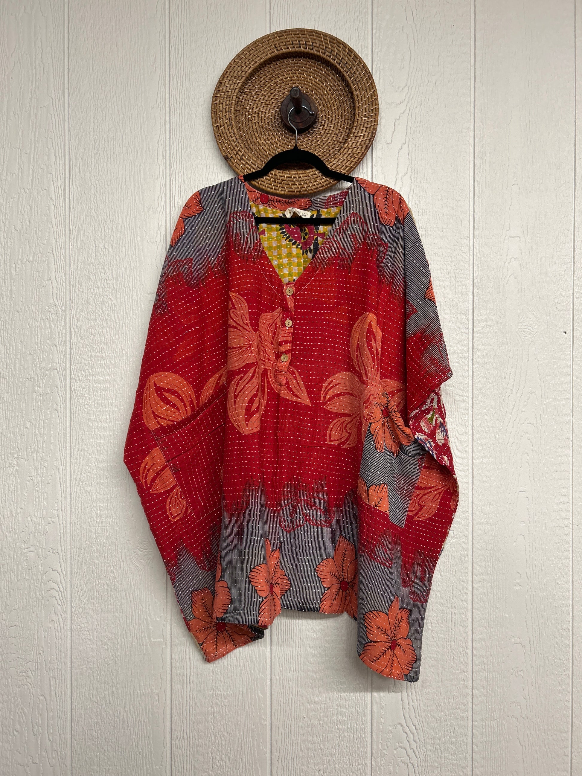 Disclosure: Our vintage styles have lived a full life before becoming the designs in our shop. Fabrics may have small threads or holes in the layers. Color inconsistency or small stains may be present. The saris are sewn together and extend the life of each design. Imperfections should be celebrated.