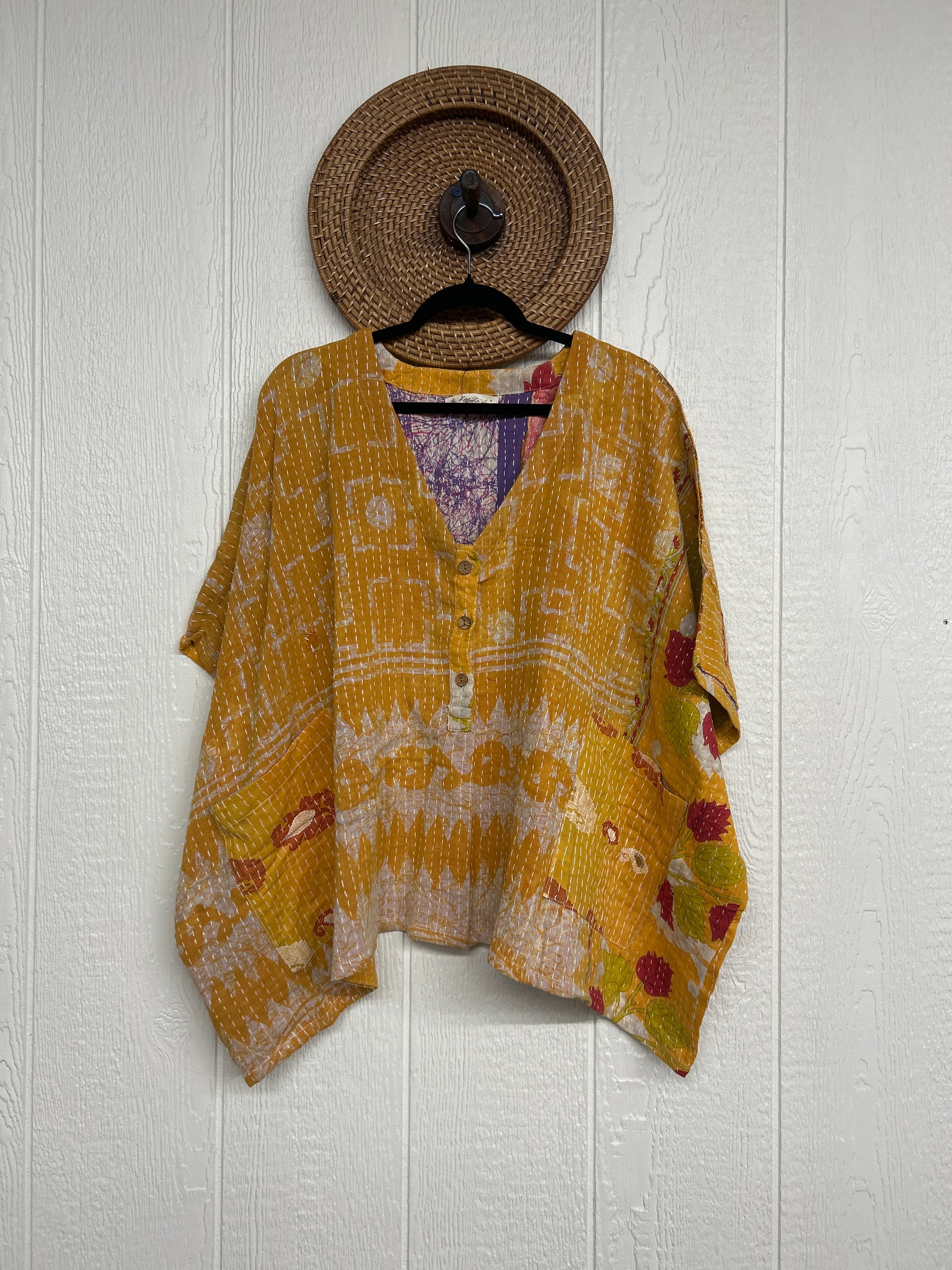 Made from our ultra luxe kantha stitch cotton sari, this effortless piece features 3 functional buttons and two slouchy pockets.