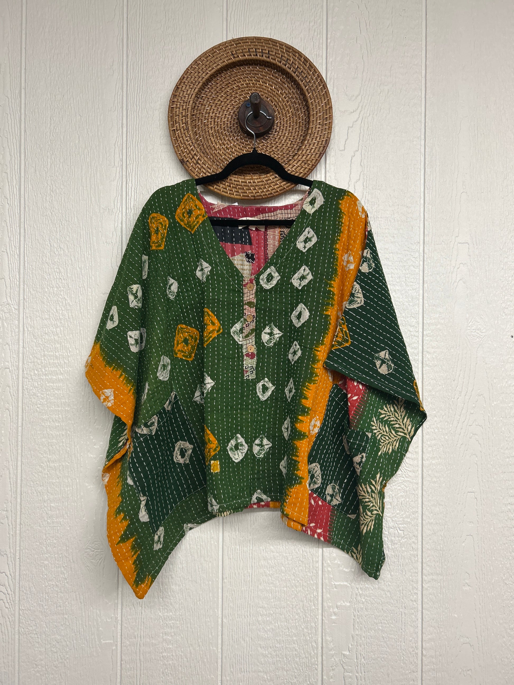 Made from our ultra luxe kantha stitch cotton sari, this effortless piece features 3 functional buttons and two slouchy pockets.