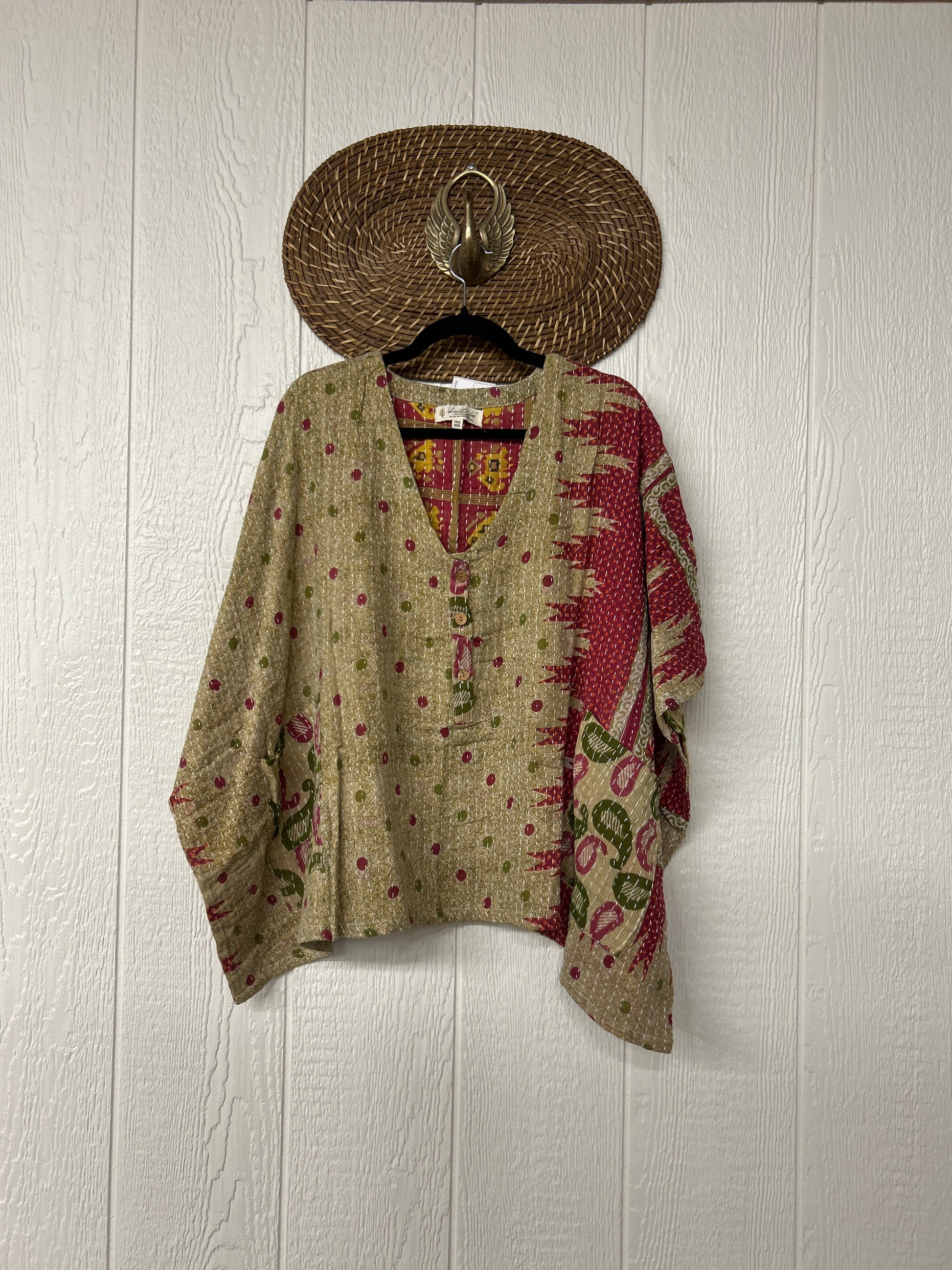 Made from our ultra luxe kantha stitch cotton sari, this effortless piece features 3 functional buttons and two slouchy pockets.