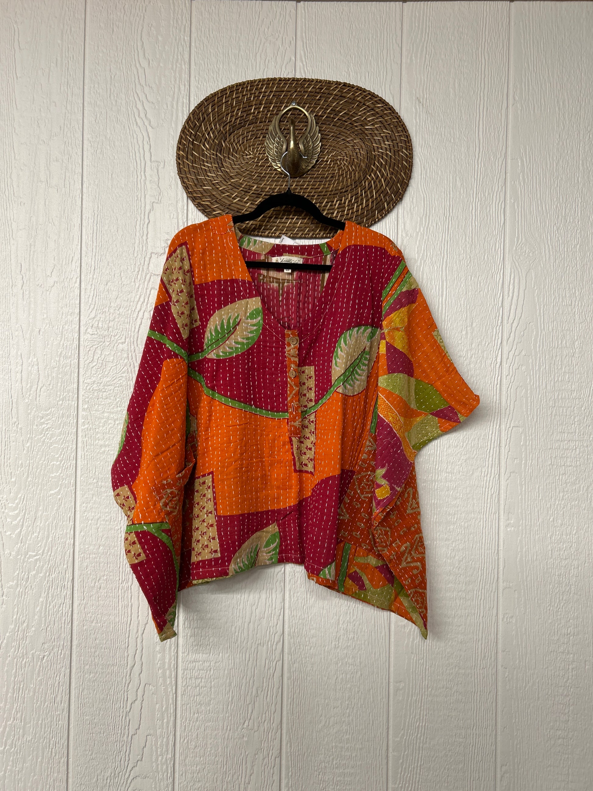 Made from our ultra luxe kantha stitch cotton sari, this effortless piece features 3 functional buttons and two slouchy pockets.