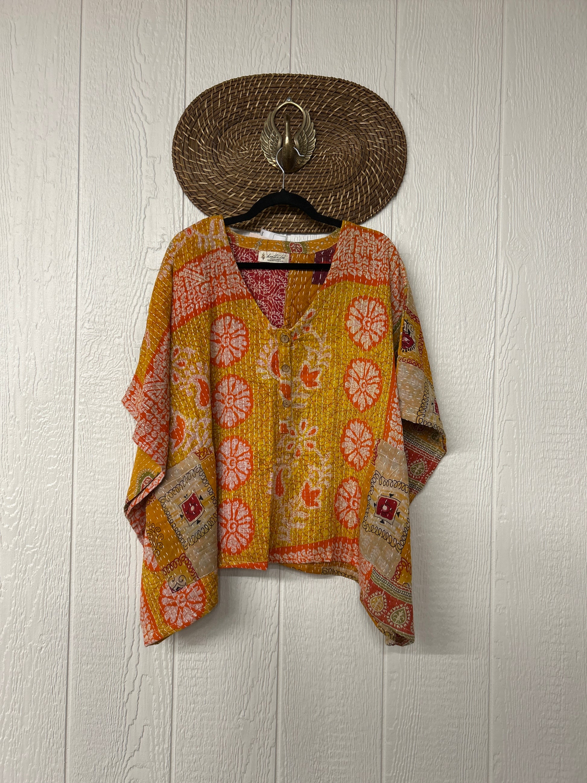 Made from our ultra luxe kantha stitch cotton sari, this effortless piece features 3 functional buttons and two slouchy pockets.