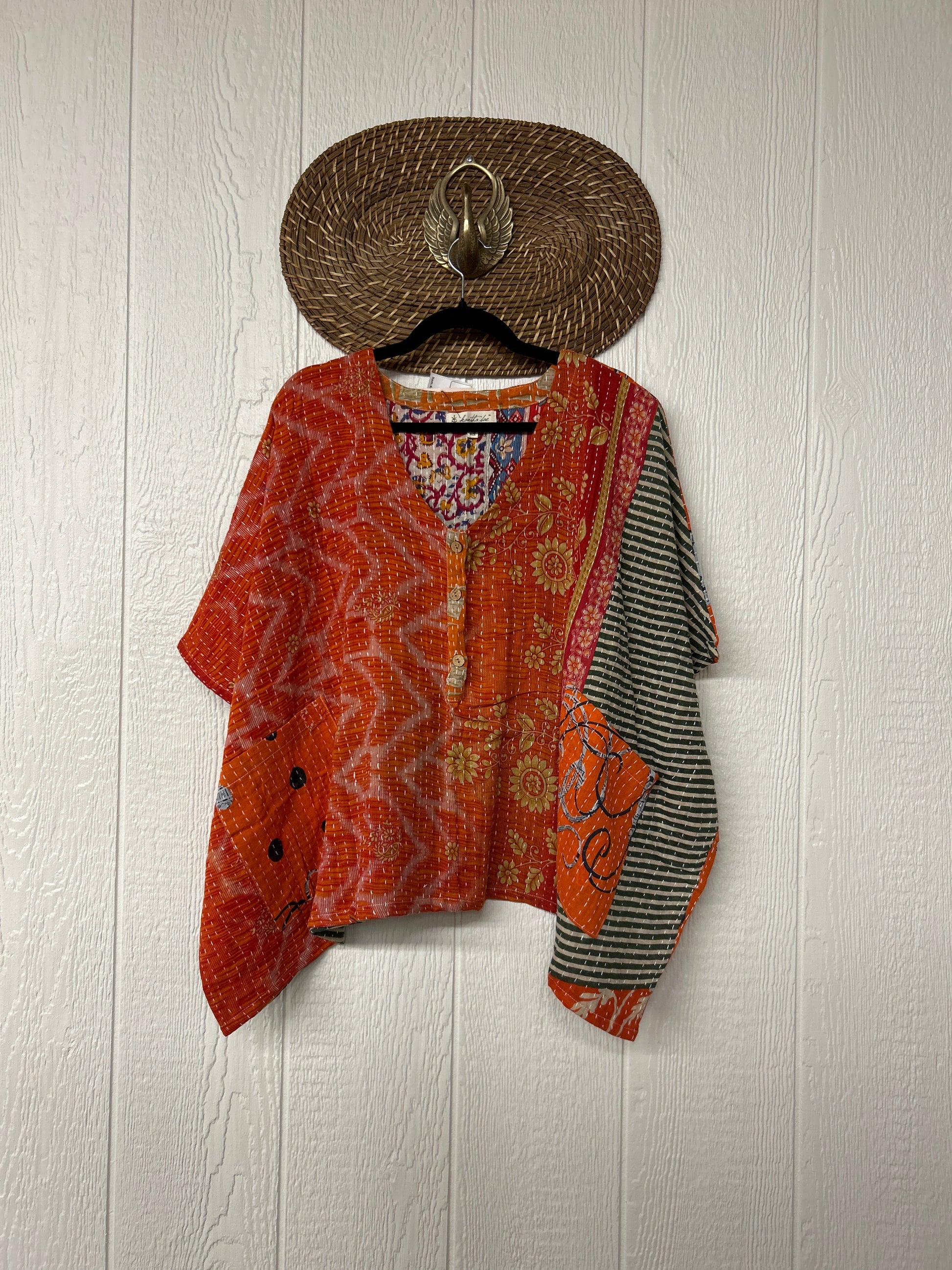 Made from our ultra luxe kantha stitch cotton sari, this effortless piece features 3 functional buttons and two slouchy pockets.