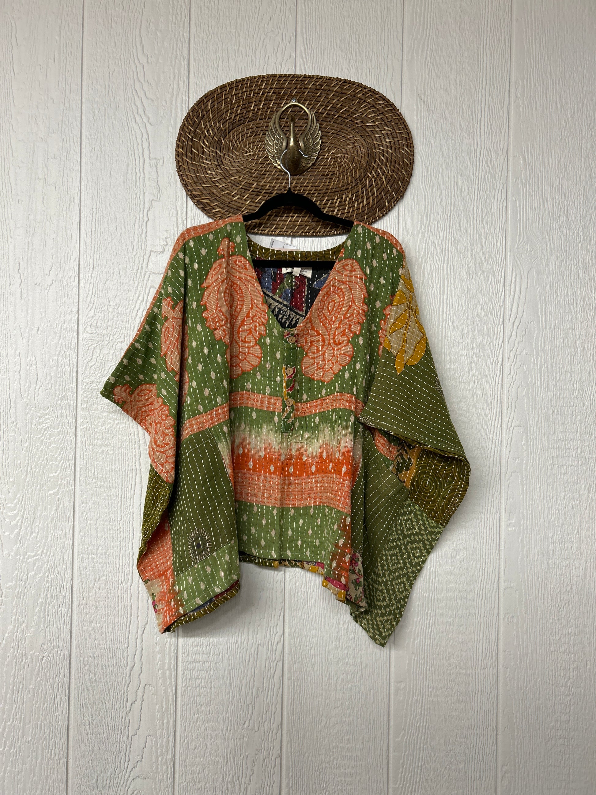 Made from our ultra luxe kantha stitch cotton sari, this effortless piece features 3 functional buttons and two slouchy pockets.