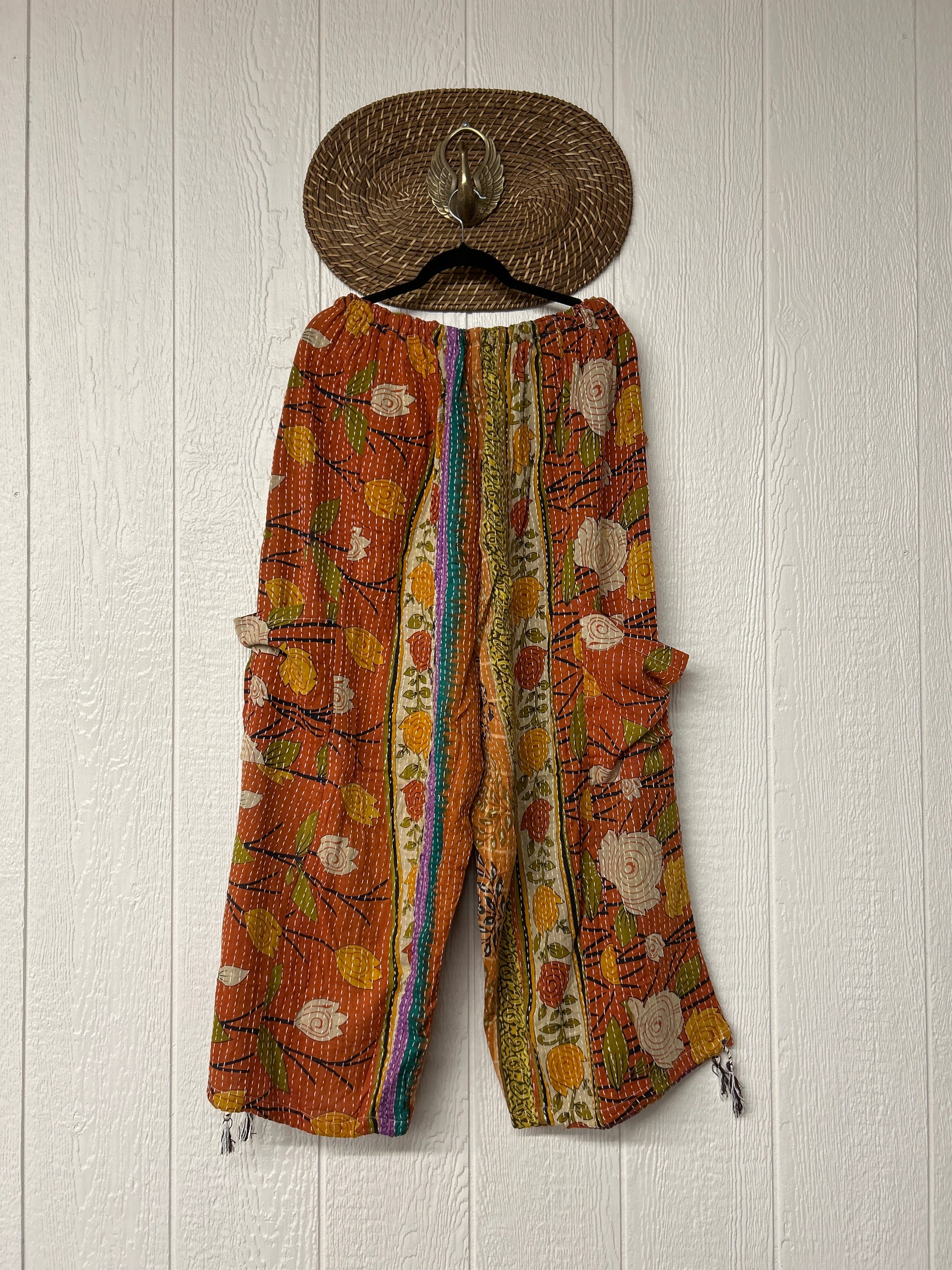 Made from our hand kantha stitched vintage cotton sari, the Karma Cargo Pants features super wide legs with deep side pockets and interior pockets.