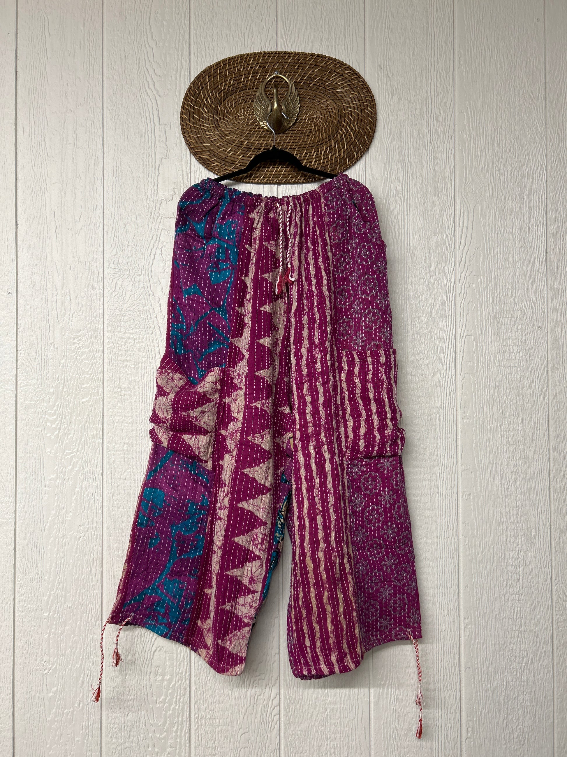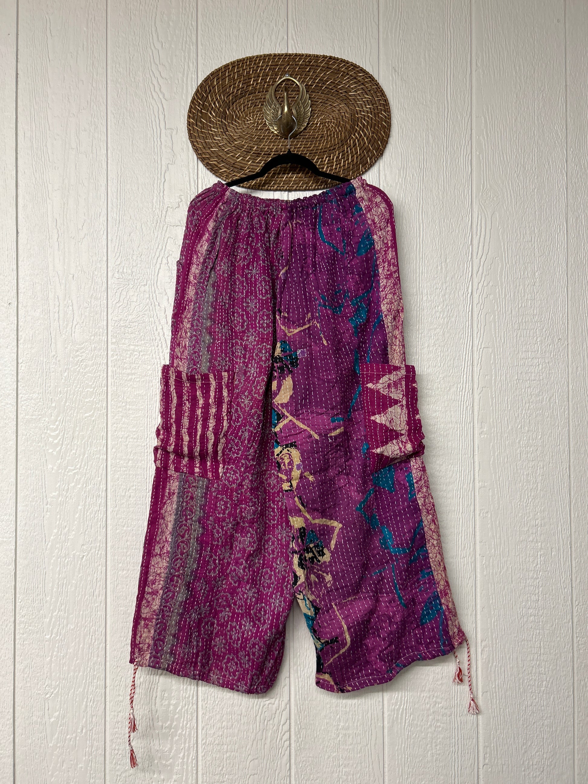 Made from our hand kantha stitched vintage cotton sari, the Karma Cargo Pants features super wide legs with deep side pockets and interior pockets.