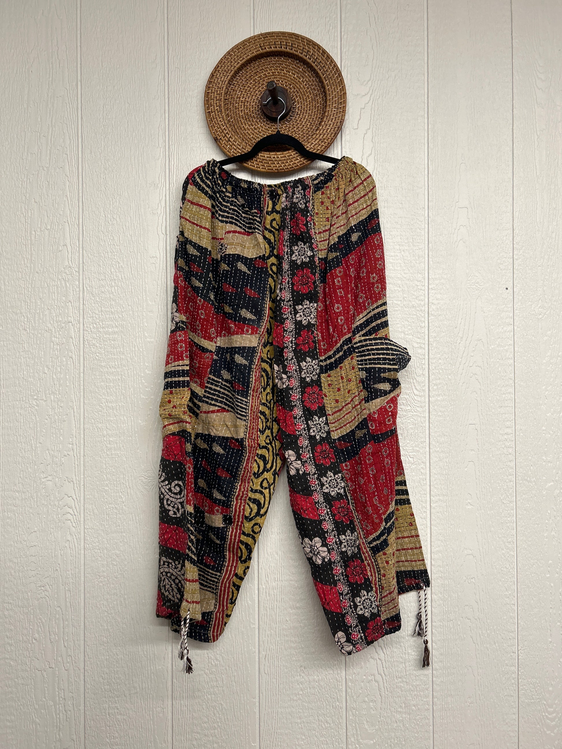 Made from our hand kantha stitched vintage cotton sari, the Karma Cargo Pants features super wide legs with deep side pockets and interior pockets.