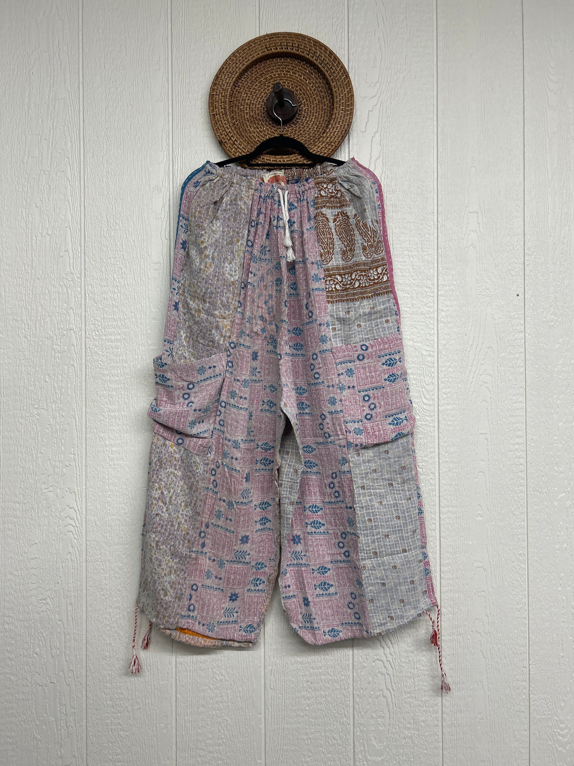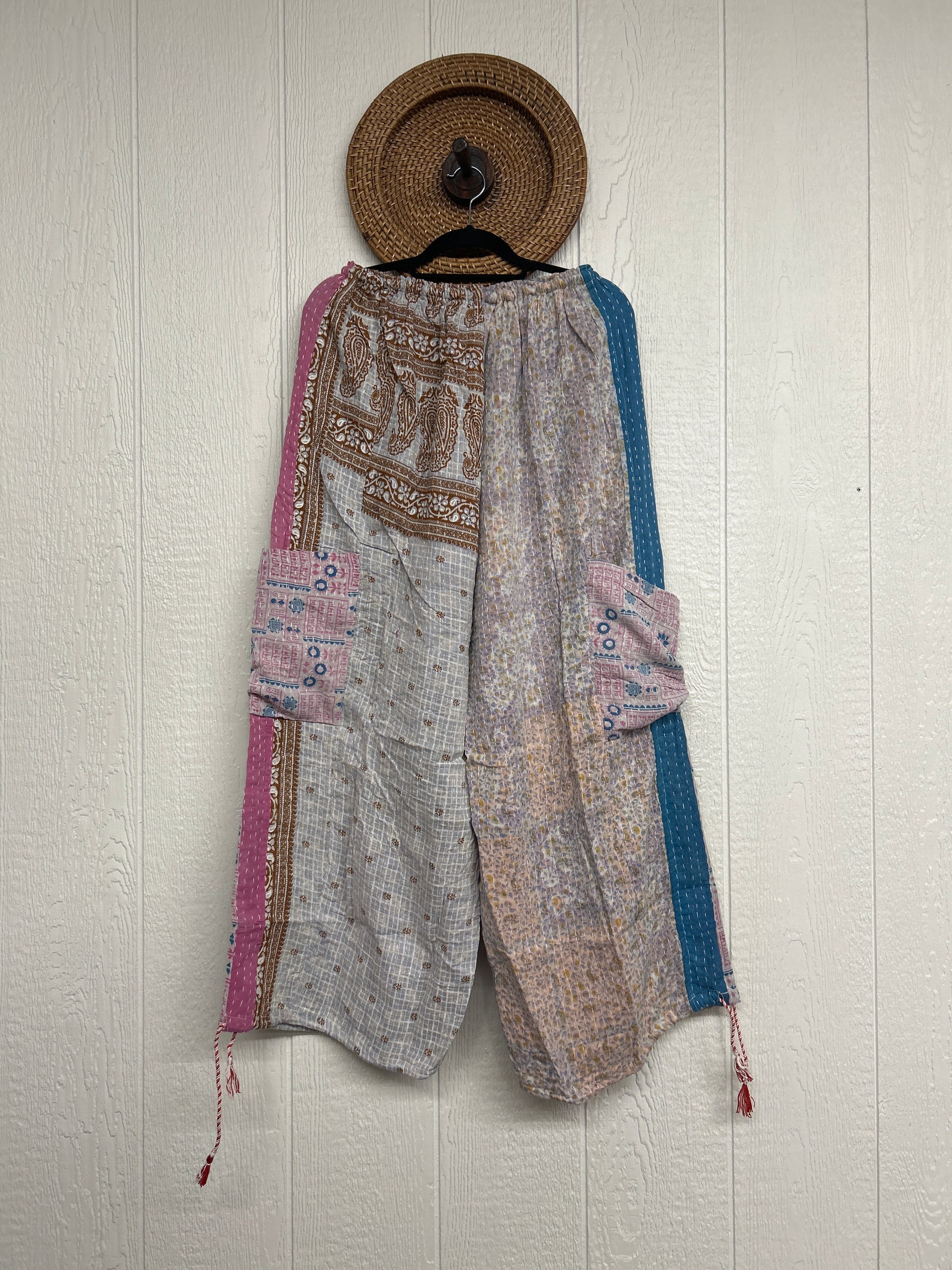 Made from our hand kantha stitched vintage cotton sari, the Karma Cargo Pants features super wide legs with deep side pockets and interior pockets.