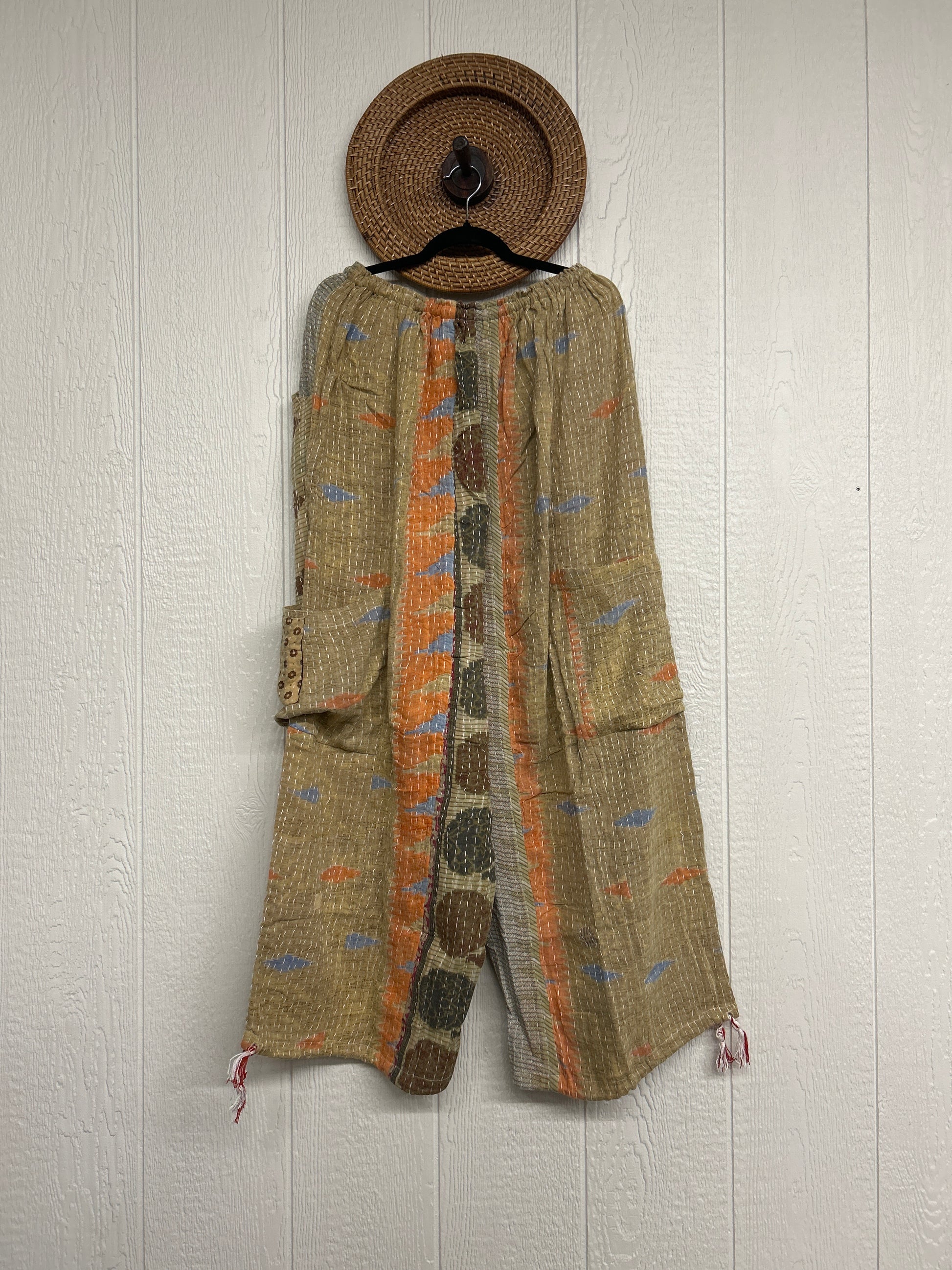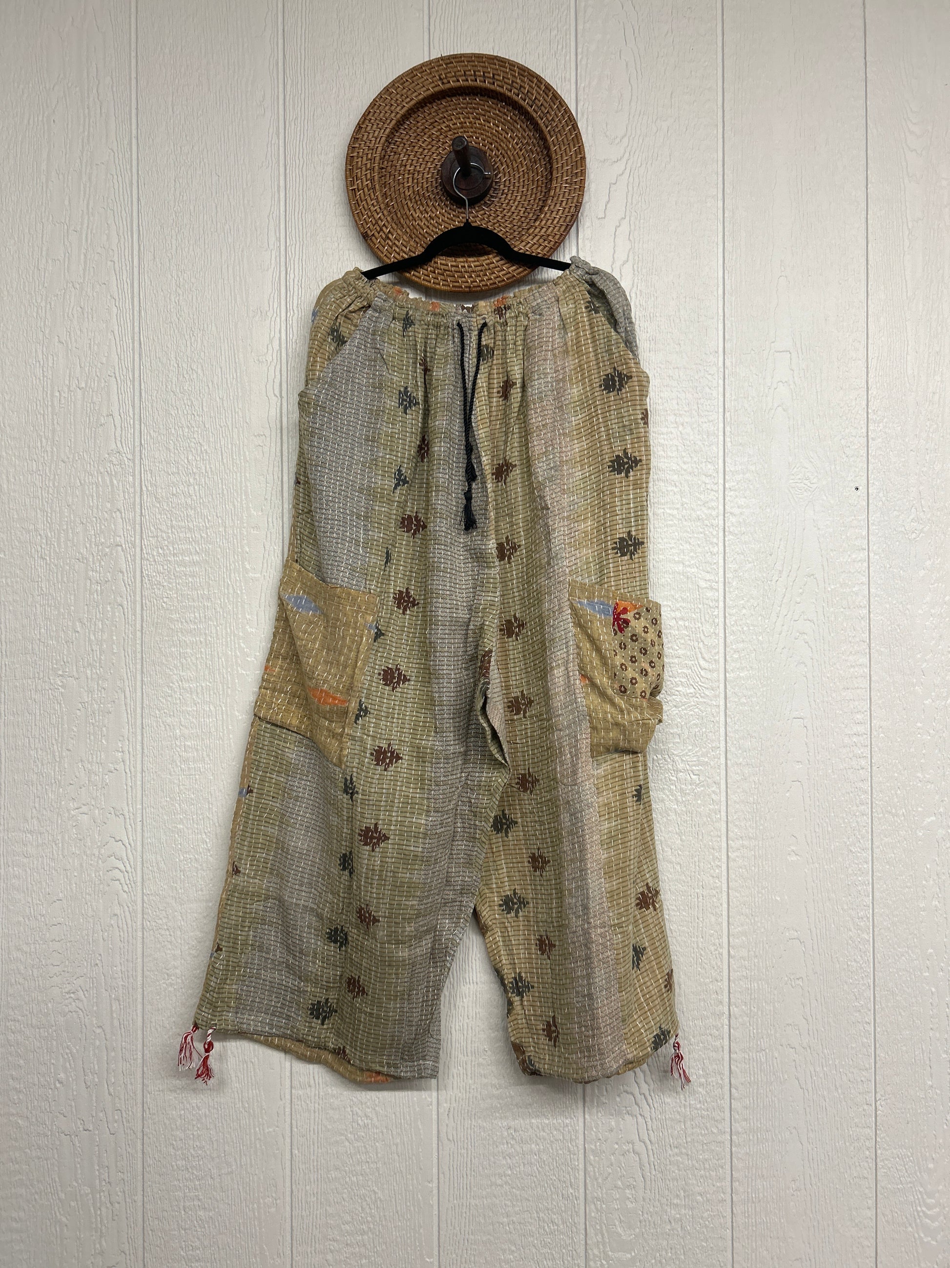 Made from our hand kantha stitched vintage cotton sari, the Karma Cargo Pants features super wide legs with deep side pockets and interior pockets.