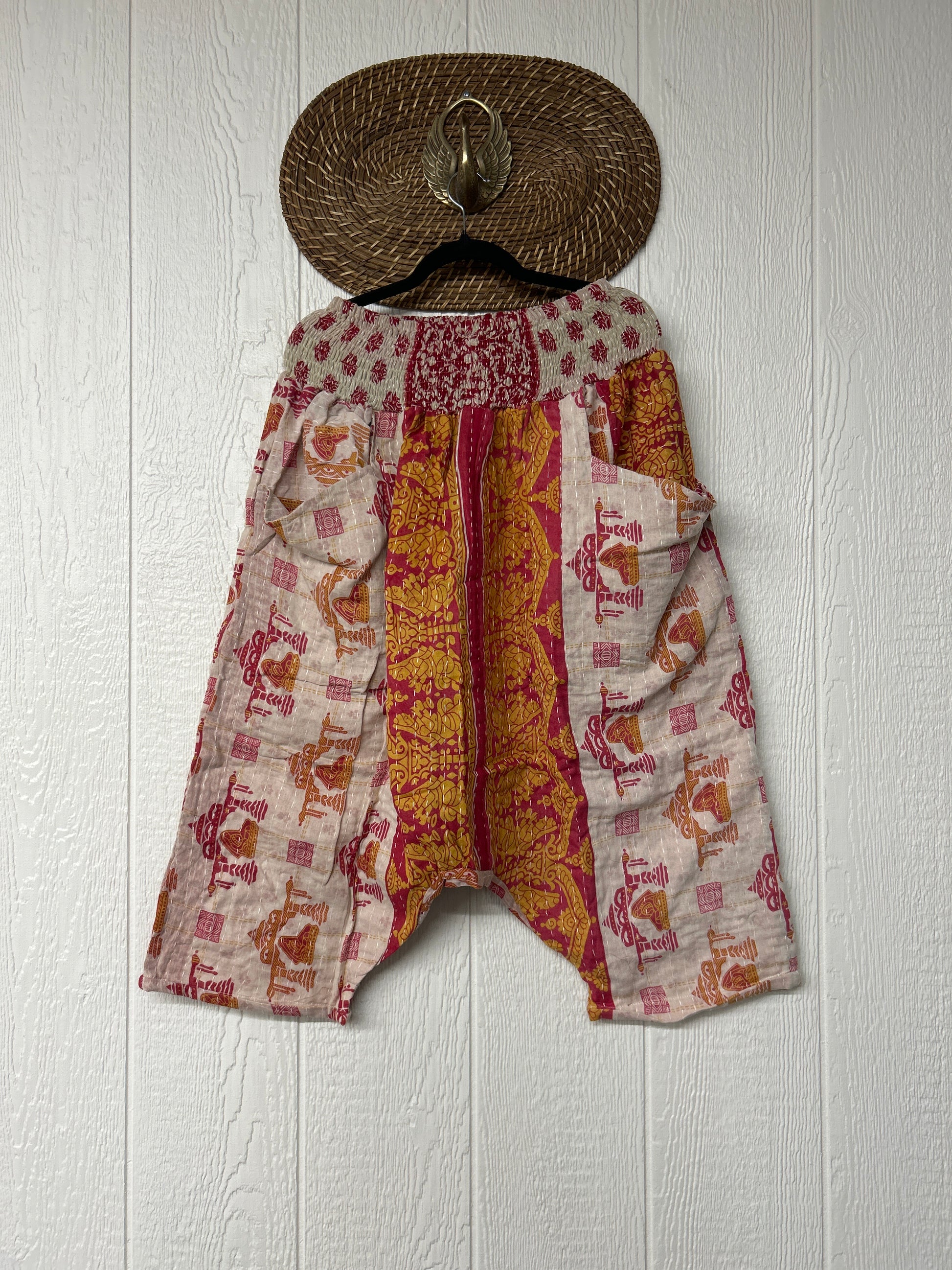 Crafted from our ultra lux embroidered vintage cotton sari coverlet these pants will make you want to dance. Features drop crotch, two front interior pockets, a back pocket and cropped length. These pants can be worn with either set of pockets to the front or back AND they are fully reversible. Yes, you can wear them 4 ways!
