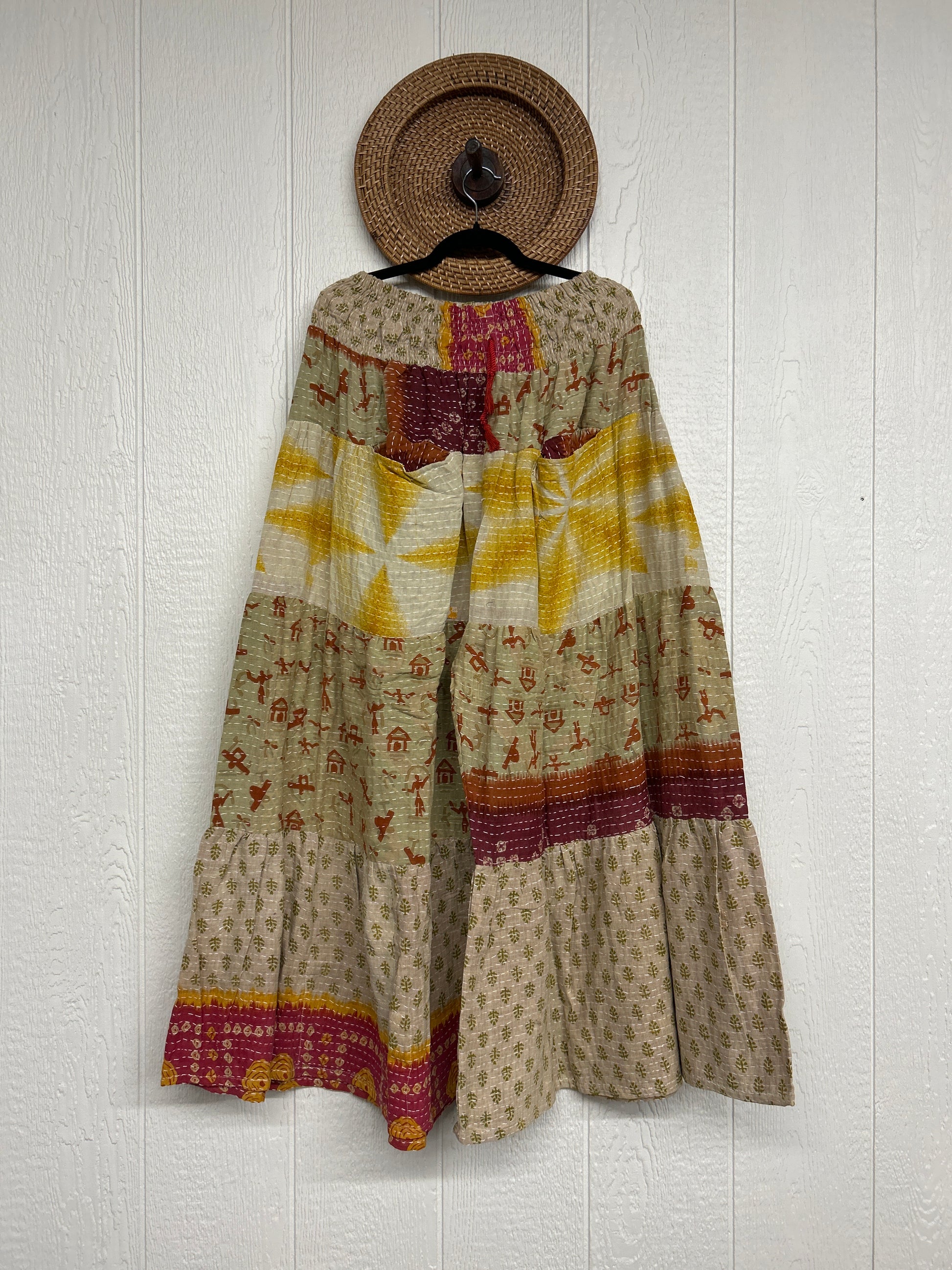 Crafted from our ultra lux Kantha stitched cotton sari, the bold design of the Lotus Wide Leg Pants features tiered wide legs for an exaggerated silhouette and a slouchy interior pocket that is absolute perfection!