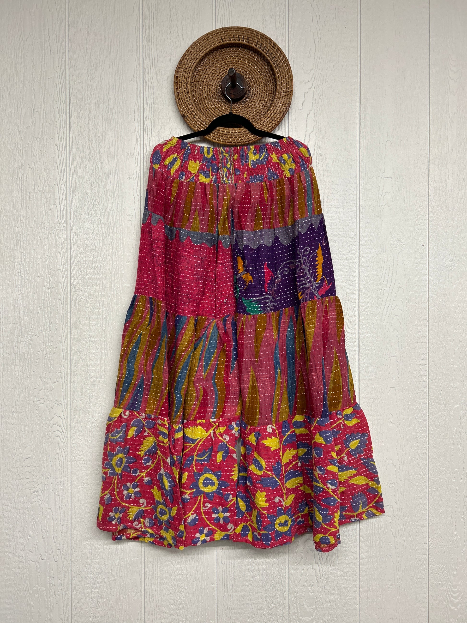 Crafted from our ultra lux Kantha stitched cotton sari, the bold design of the Lotus Wide Leg Pants features tiered wide legs for an exaggerated silhouette and a slouchy interior pocket that is absolute perfection!