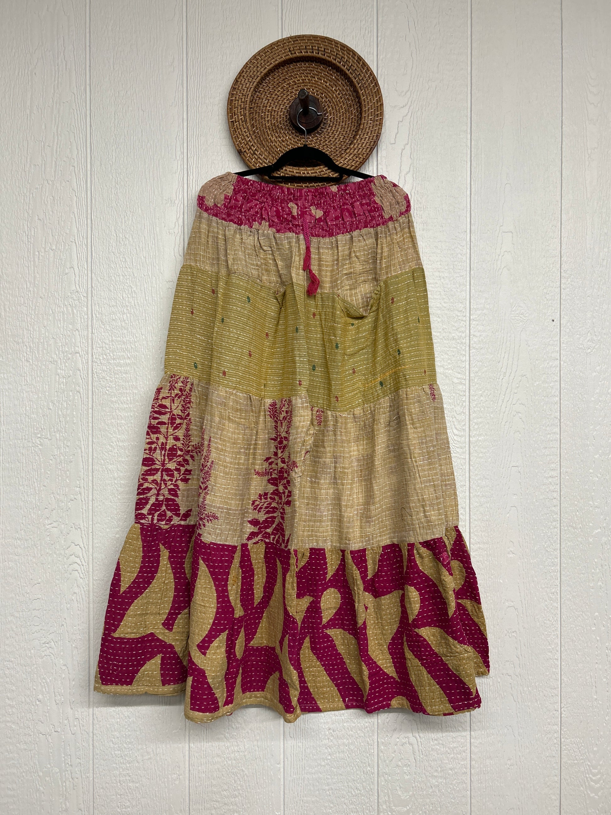 Crafted from our ultra lux Kantha stitched cotton sari, the bold design of the Lotus Wide Leg Pants features tiered wide legs for an exaggerated silhouette and a slouchy interior pocket that is absolute perfection!