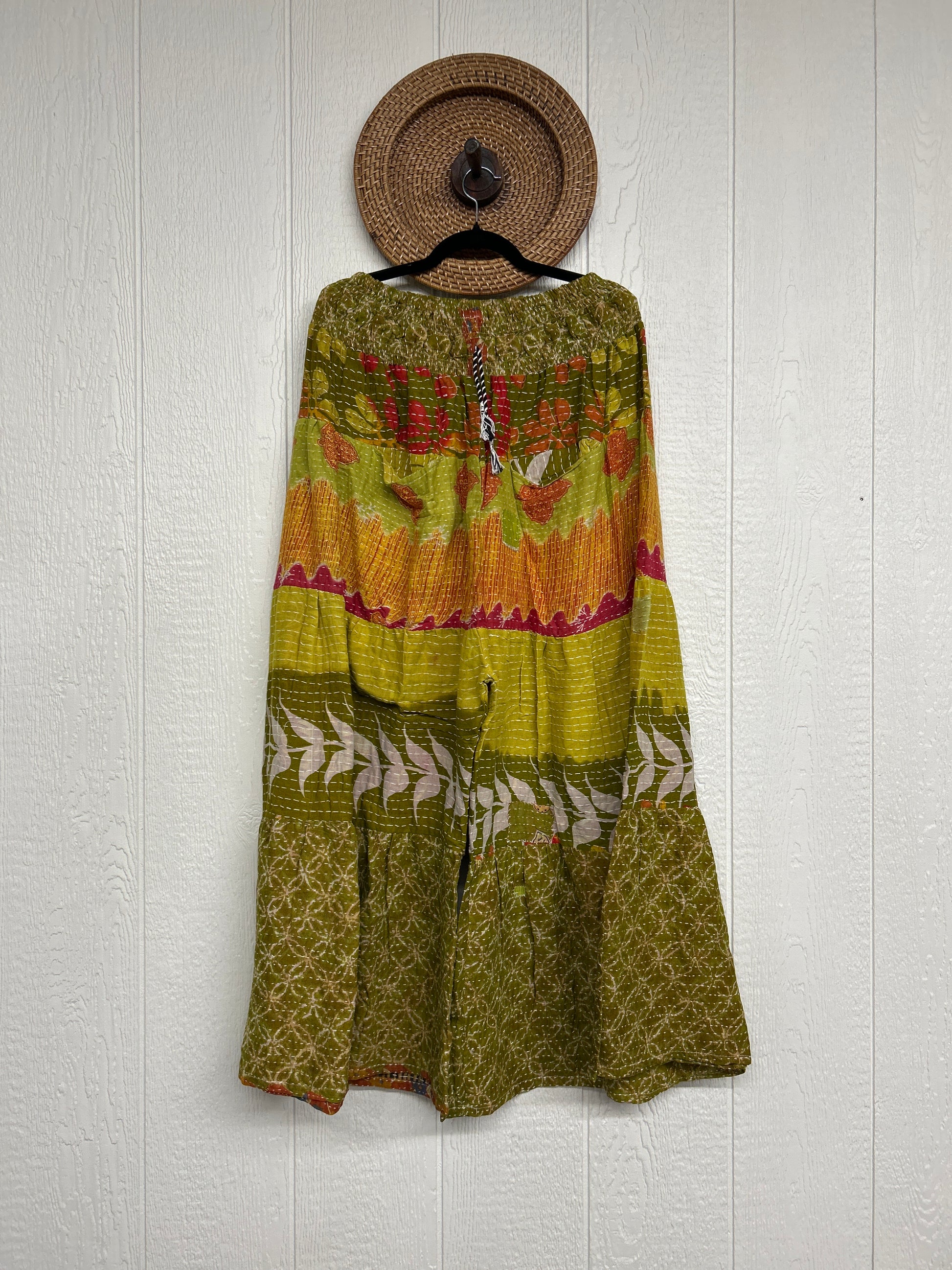 Crafted from our ultra lux Kantha stitched cotton sari, the bold design of the Lotus Wide Leg Pants features tiered wide legs for an exaggerated silhouette and a slouchy interior pocket that is absolute perfection!
