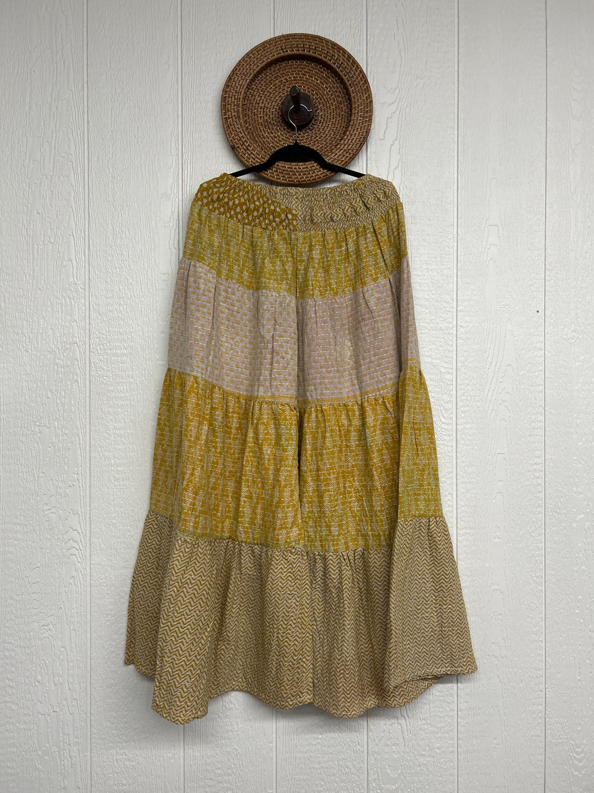 Crafted from our ultra lux Kantha stitched cotton sari, the bold design of the Lotus Wide Leg Pants features tiered wide legs for an exaggerated silhouette and a slouchy interior pocket that is absolute perfection!