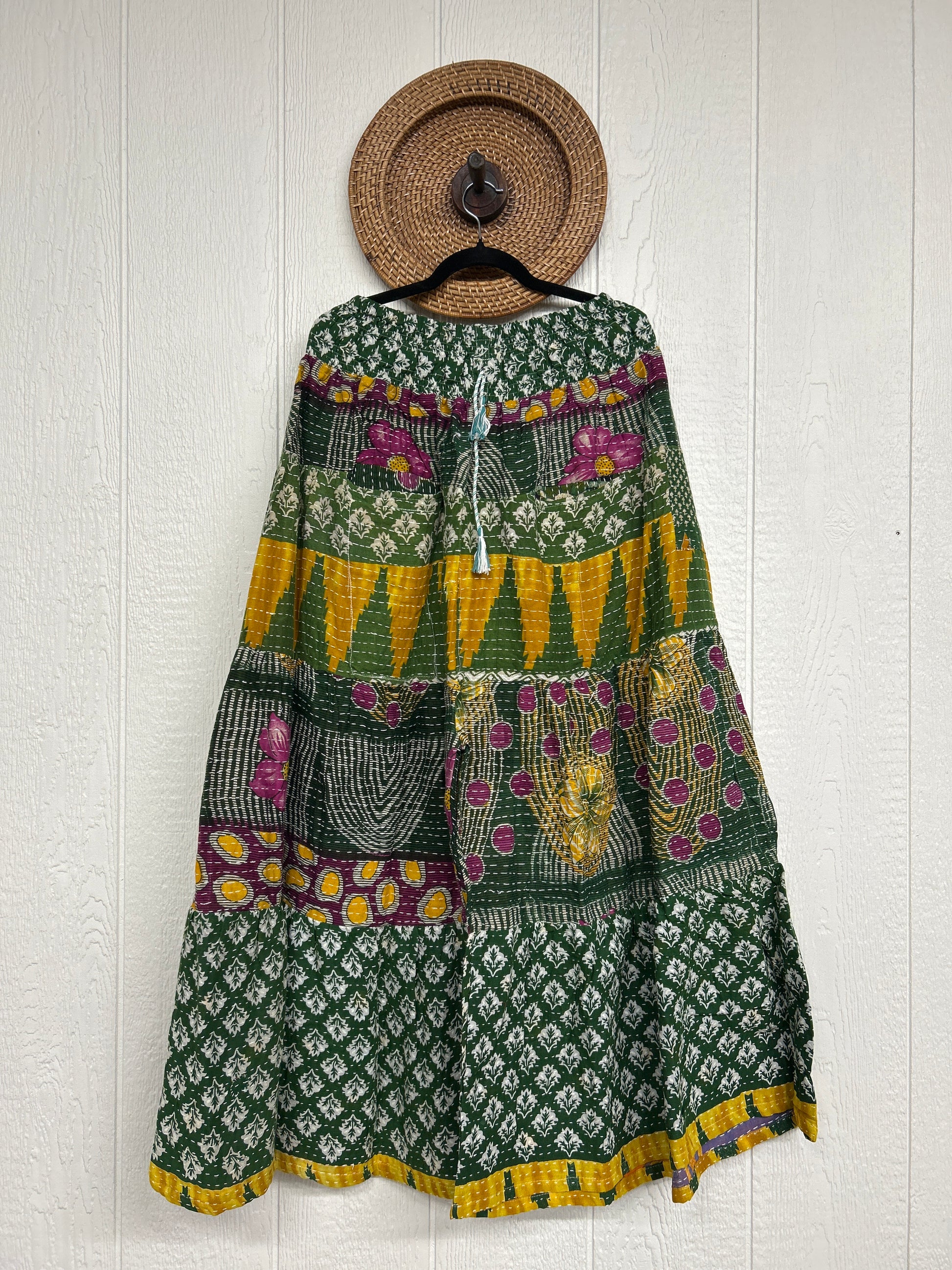 Crafted from our ultra lux Kantha stitched cotton sari, the bold design of the Lotus Wide Leg Pants features tiered wide legs for an exaggerated silhouette and a slouchy interior pocket that is absolute perfection!