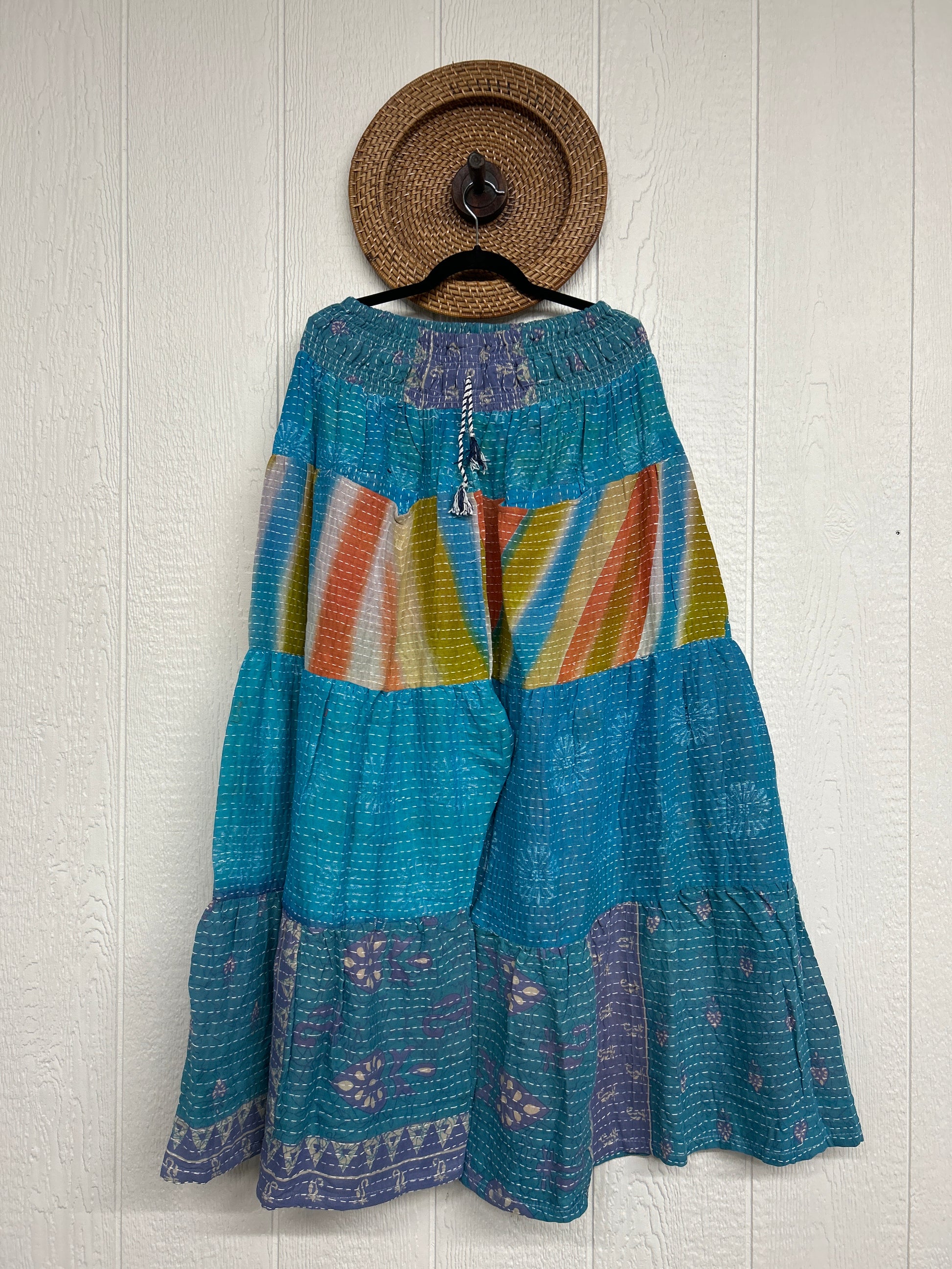 Crafted from our ultra lux Kantha stitched cotton sari, the bold design of the Lotus Wide Leg Pants features tiered wide legs for an exaggerated silhouette and a slouchy interior pocket that is absolute perfection!