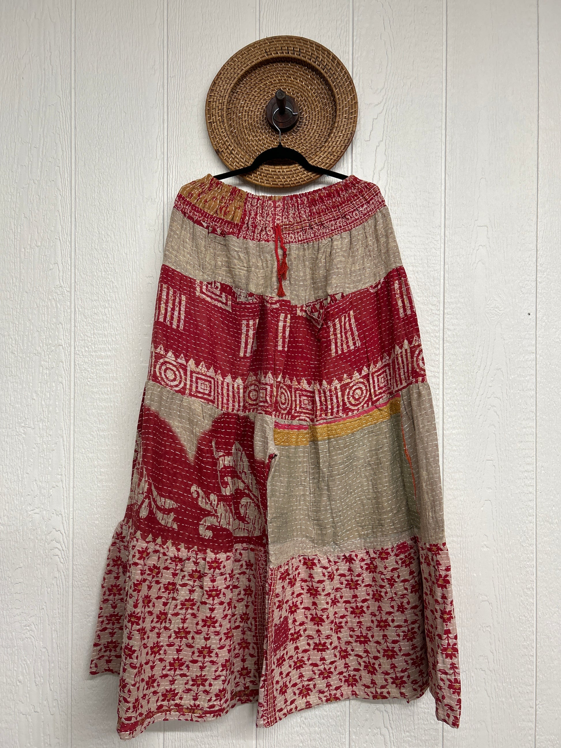 Crafted from our ultra lux Kantha stitched cotton sari, the bold design of the Lotus Wide Leg Pants features tiered wide legs for an exaggerated silhouette and a slouchy interior pocket that is absolute perfection!