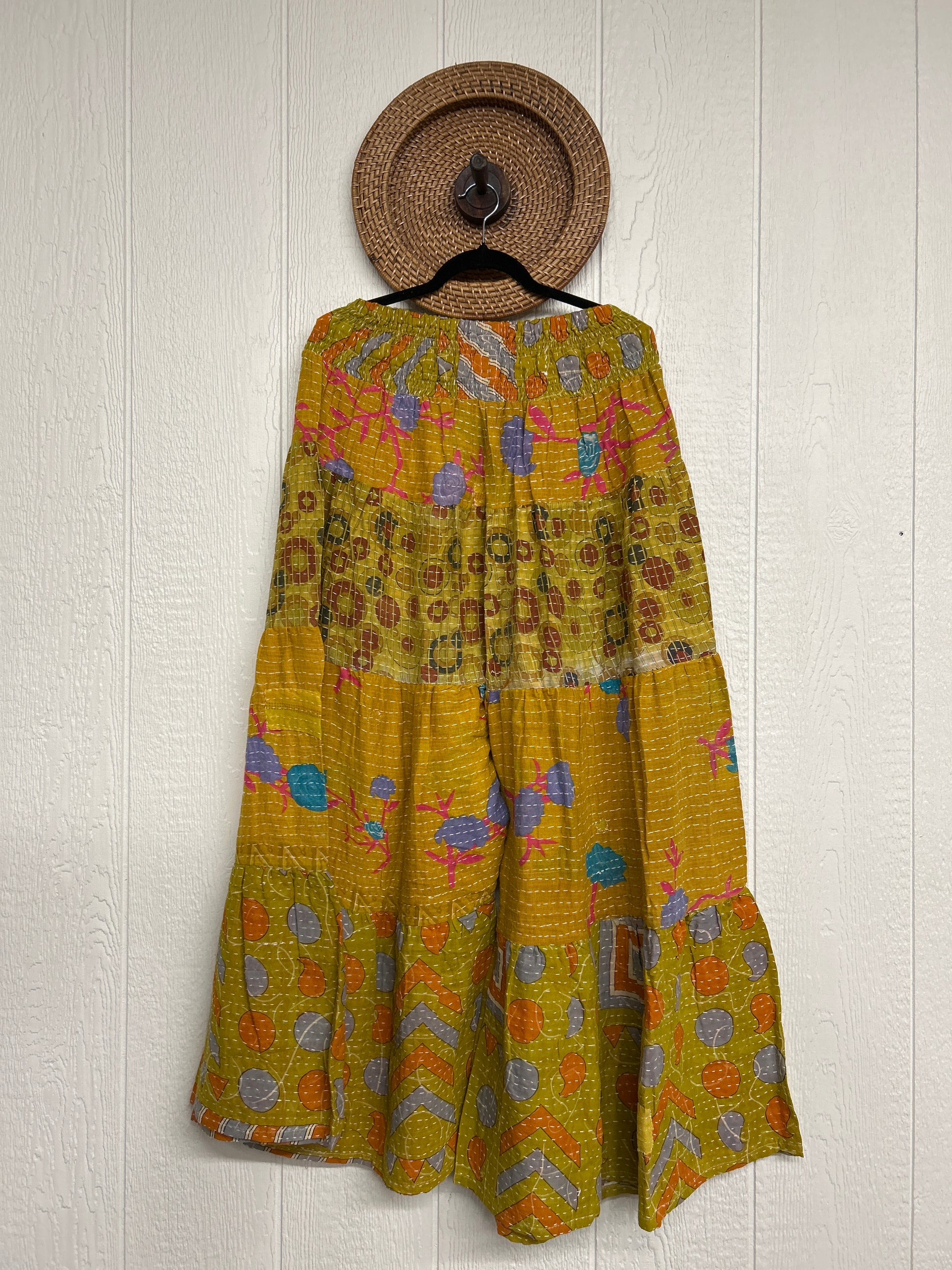 Crafted from our ultra lux Kantha stitched cotton sari, the bold design of the Lotus Wide Leg Pants features tiered wide legs for an exaggerated silhouette and a slouchy interior pocket that is absolute perfection!