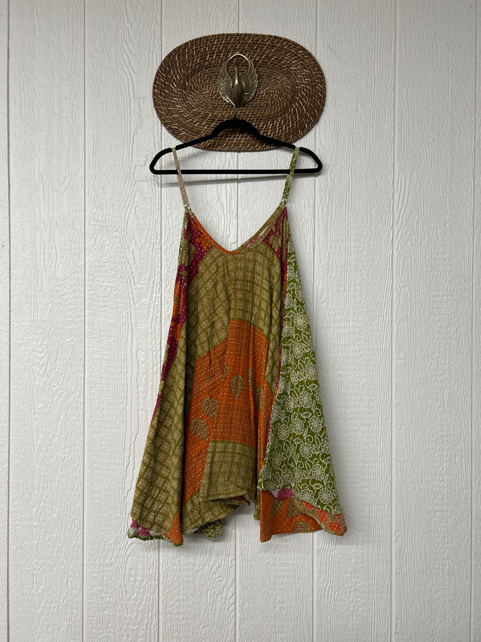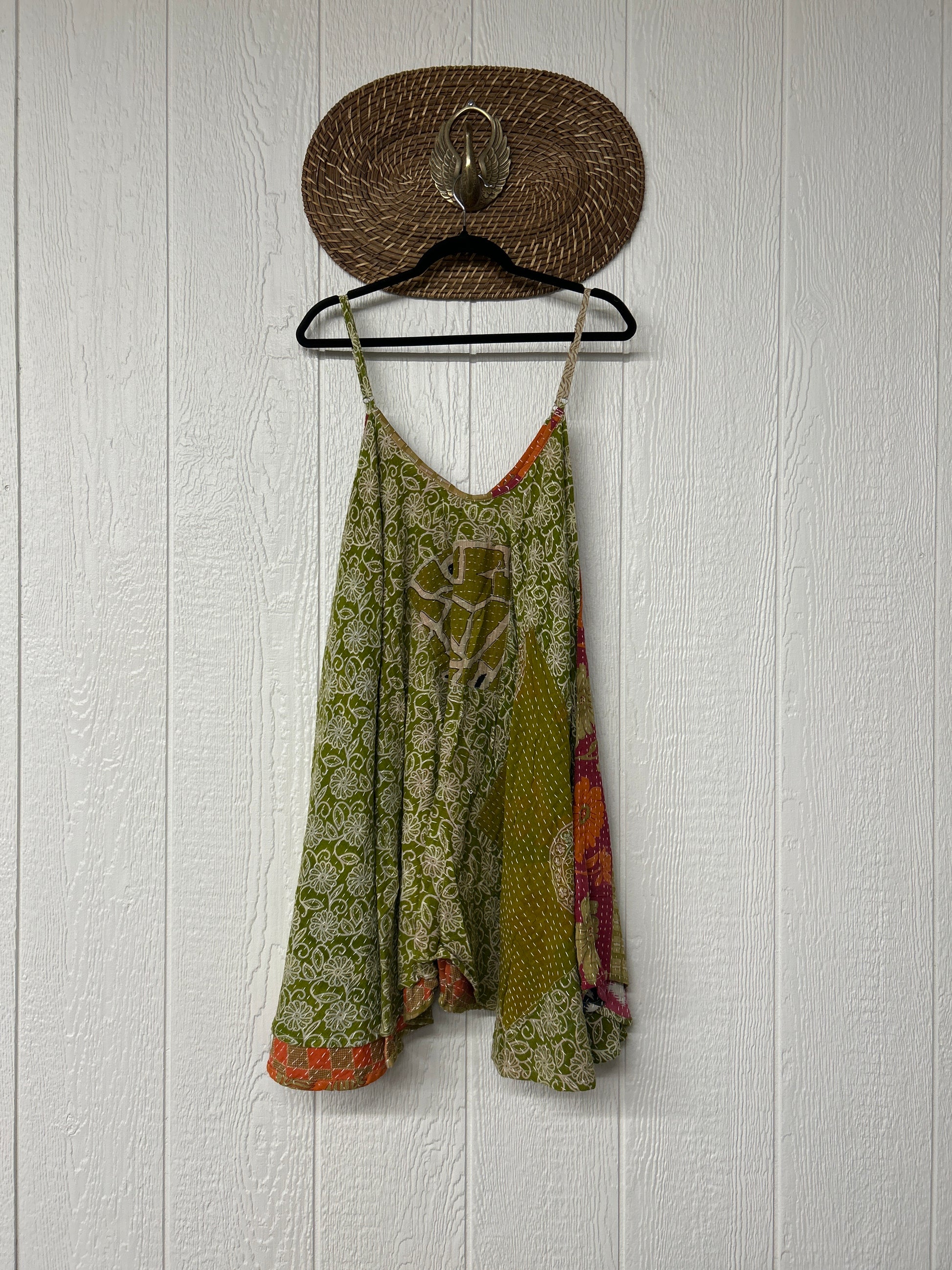 Crafted from our ultra lux cotton Kantha stitch sari the Moonchild Mini Dress features adjustable straps, interior pockets and an exaggerated sweep for extra dimension. A total vibe whether you wear as a layering piece under your favorite Kantha Bae pieces or on it's own.
