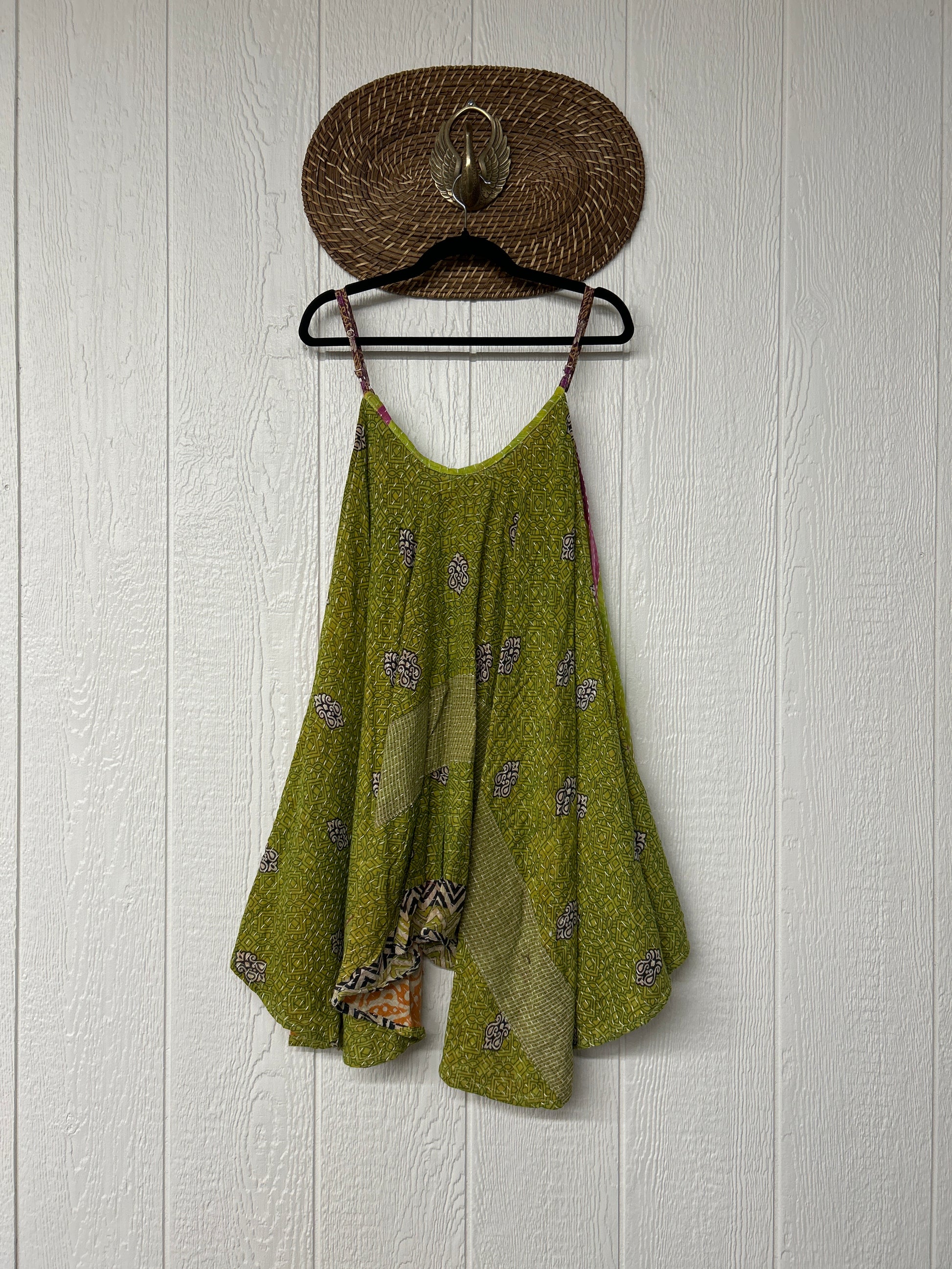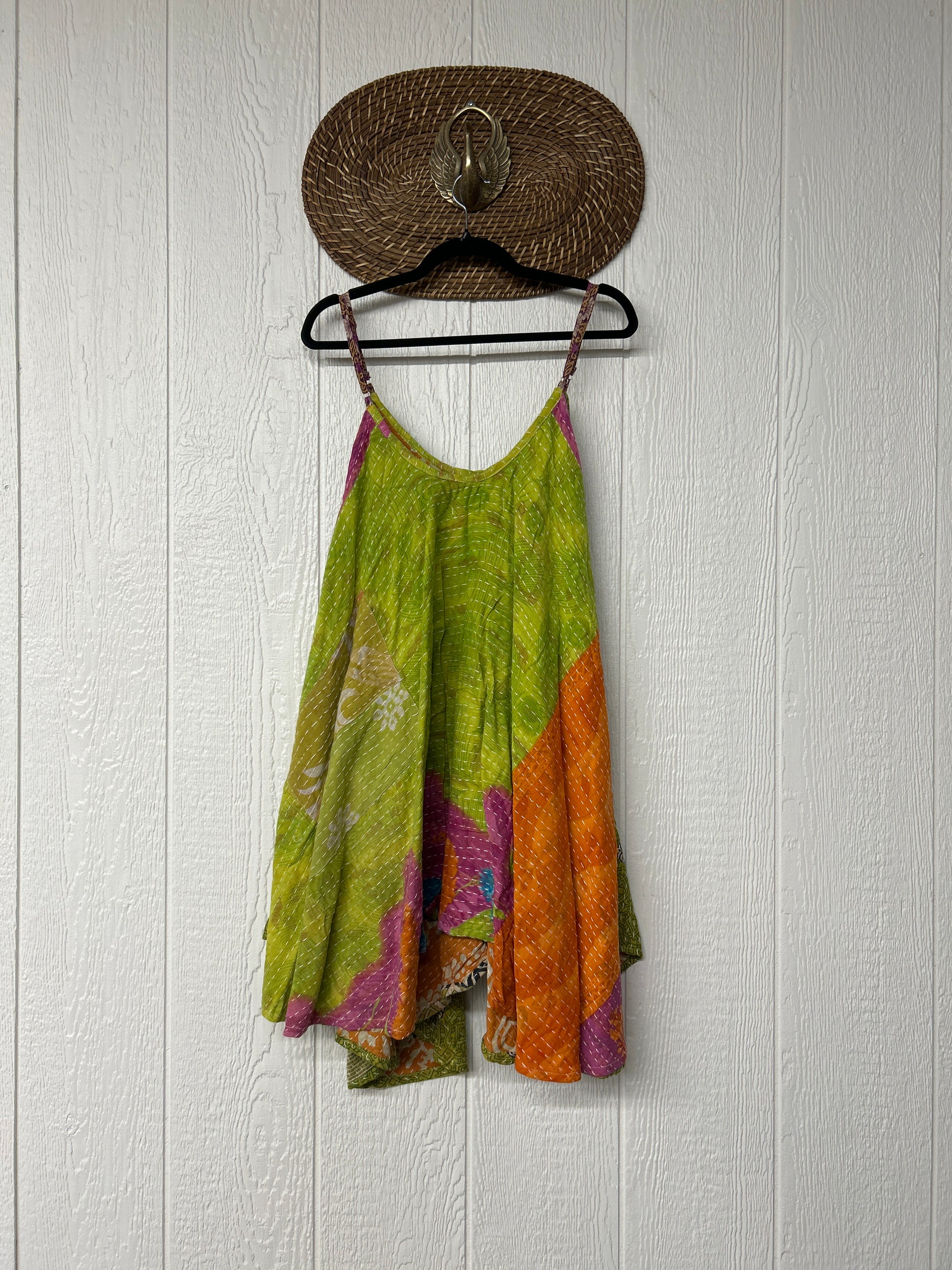 Crafted from our ultra lux cotton Kantha stitch sari the Moonchild Mini Dress features adjustable straps, interior pockets and an exaggerated sweep for extra dimension. A total vibe whether you wear as a layering piece under your favorite Kantha Bae pieces or on it's own.