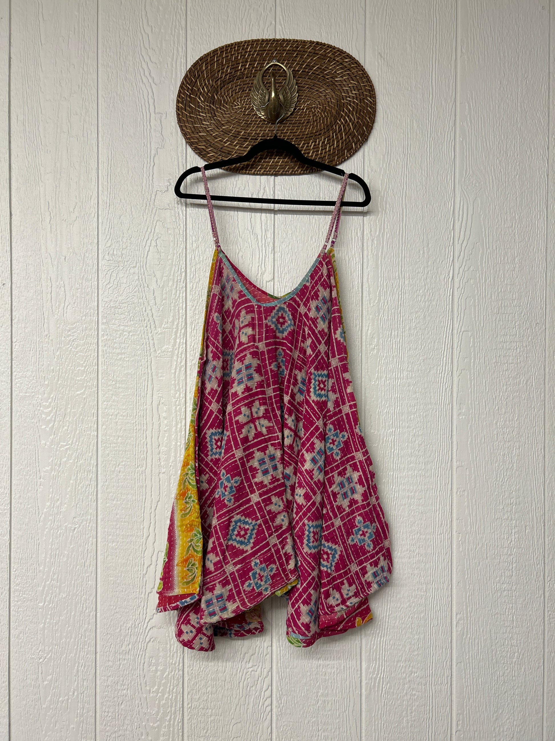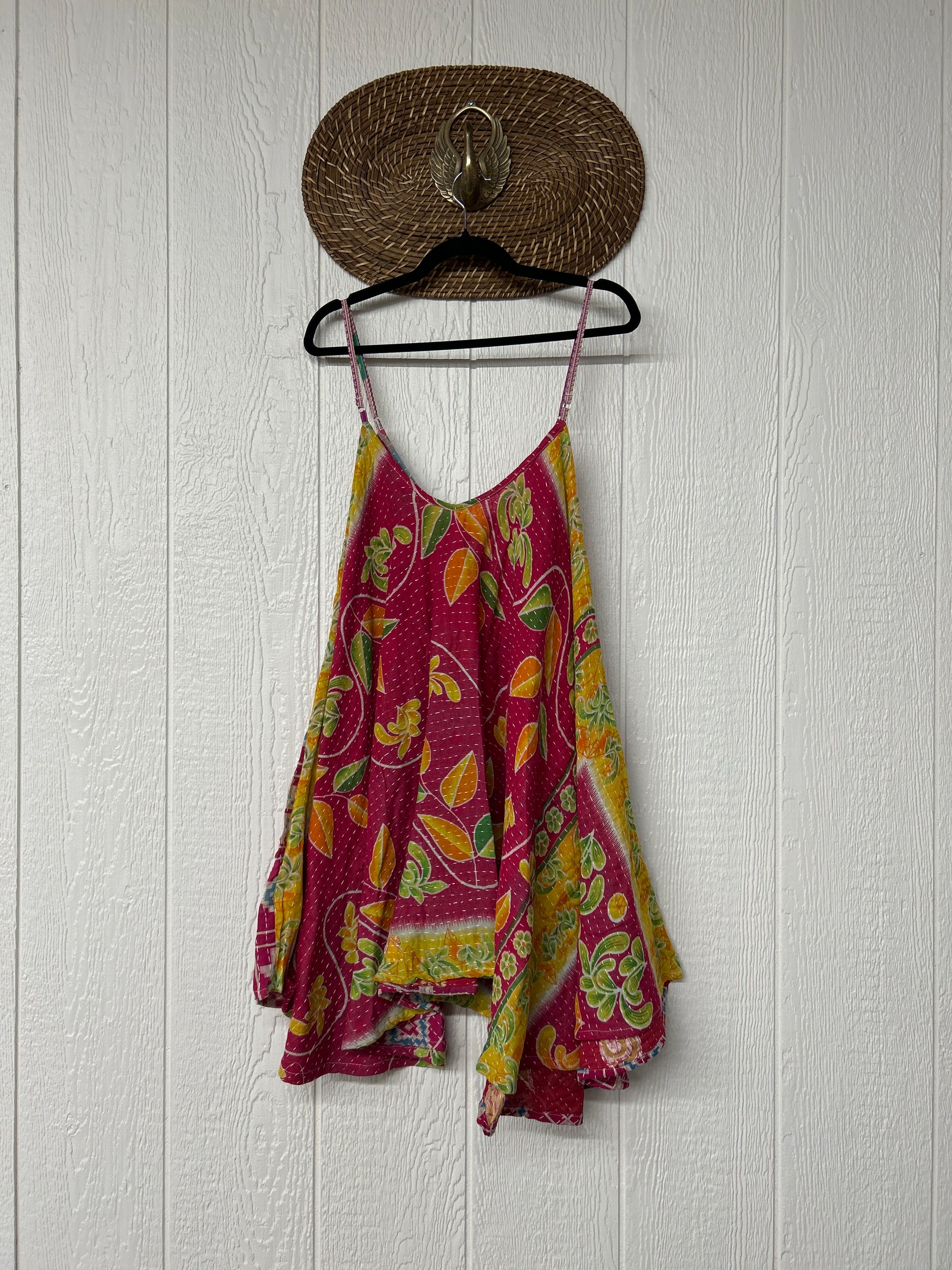 Crafted from our ultra lux cotton Kantha stitch sari the Moonchild Mini Dress features adjustable straps, interior pockets and an exaggerated sweep for extra dimension. A total vibe whether you wear as a layering piece under your favorite Kantha Bae pieces or on it's own.