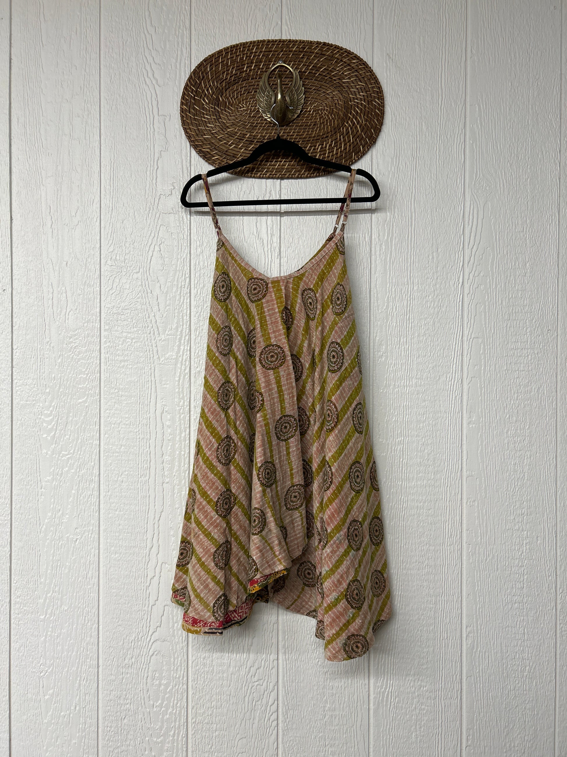 Crafted from our ultra lux cotton Kantha stitch sari the Moonchild Mini Dress features adjustable straps, interior pockets and an exaggerated sweep for extra dimension. A total vibe whether you wear as a layering piece under your favorite Kantha Bae pieces or on it's own.