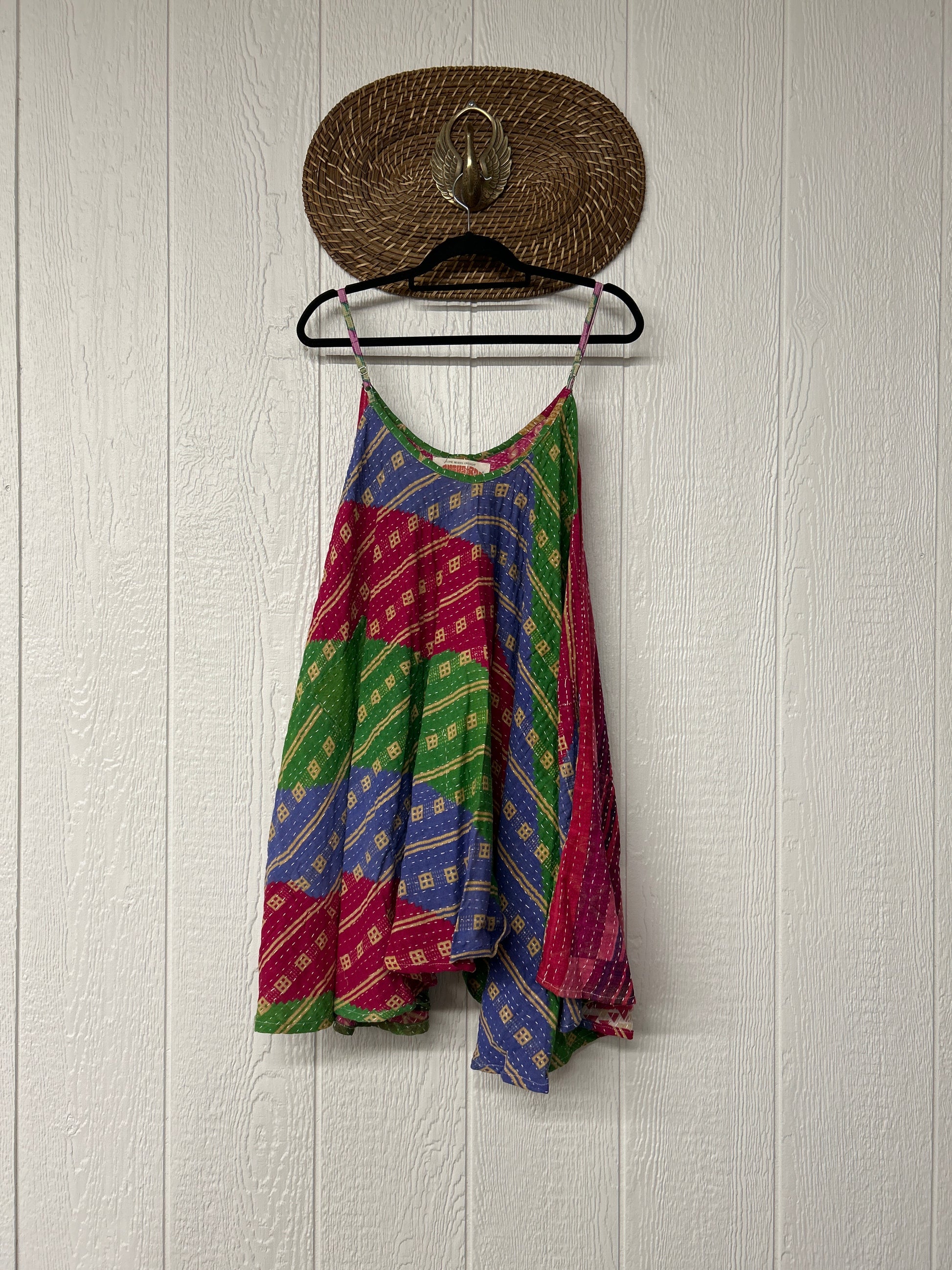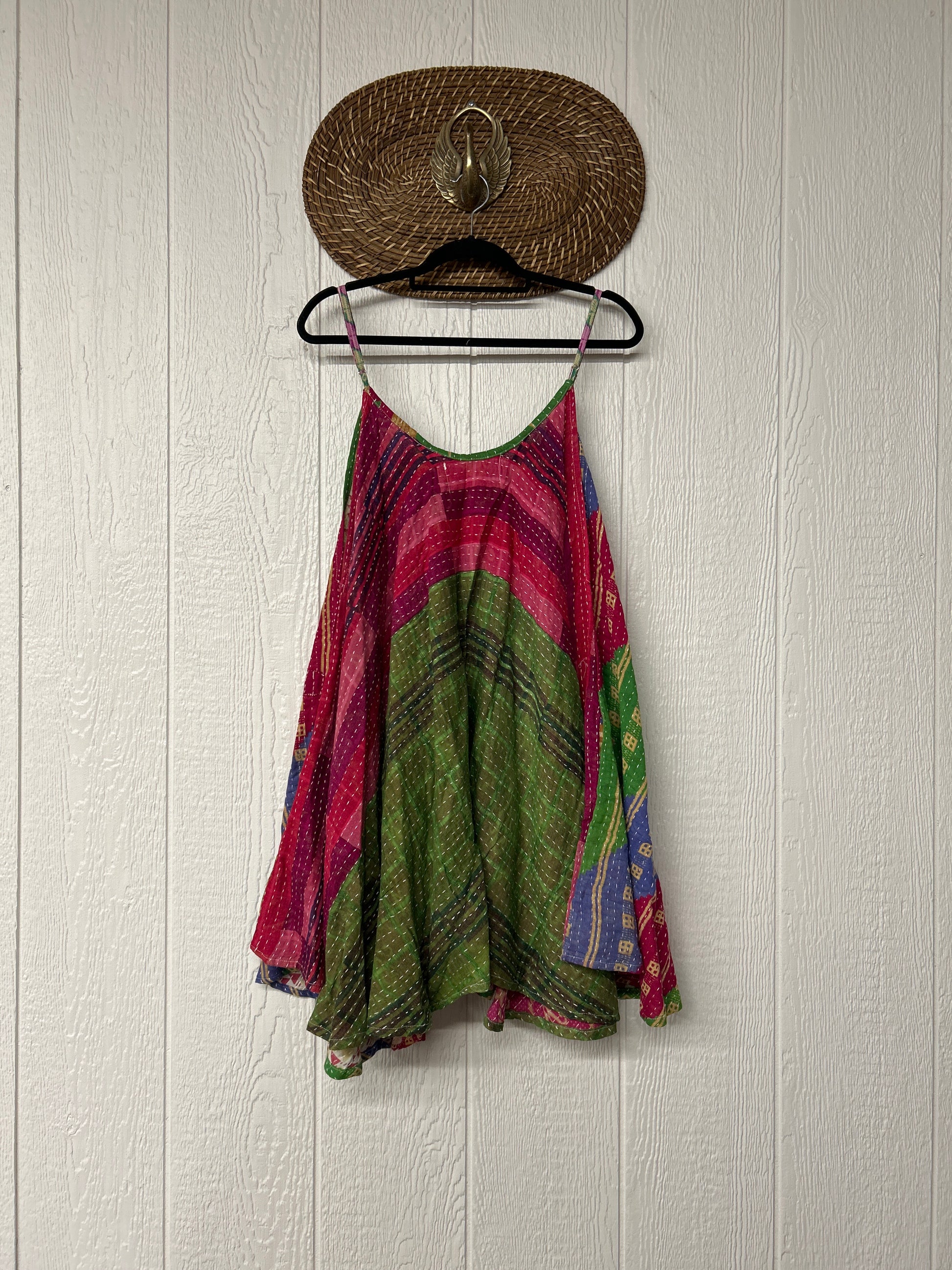 Crafted from our ultra lux cotton Kantha stitch sari the Moonchild Mini Dress features adjustable straps, interior pockets and an exaggerated sweep for extra dimension. A total vibe whether you wear as a layering piece under your favorite Kantha Bae pieces or on it's own.