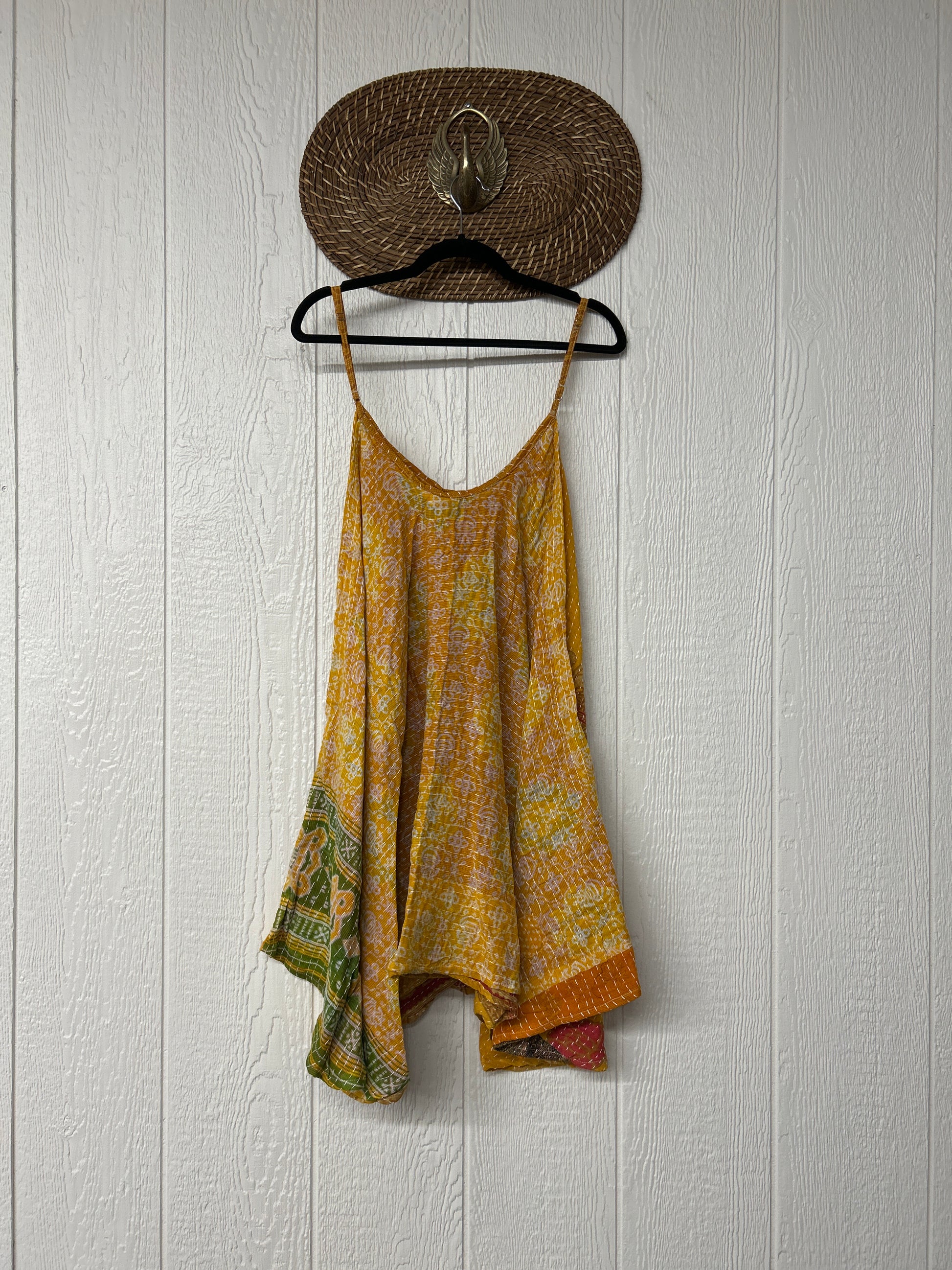 Crafted from our ultra lux cotton Kantha stitch sari the Moonchild Mini Dress features adjustable straps, interior pockets and an exaggerated sweep for extra dimension. A total vibe whether you wear as a layering piece under your favorite Kantha Bae pieces or on it's own.