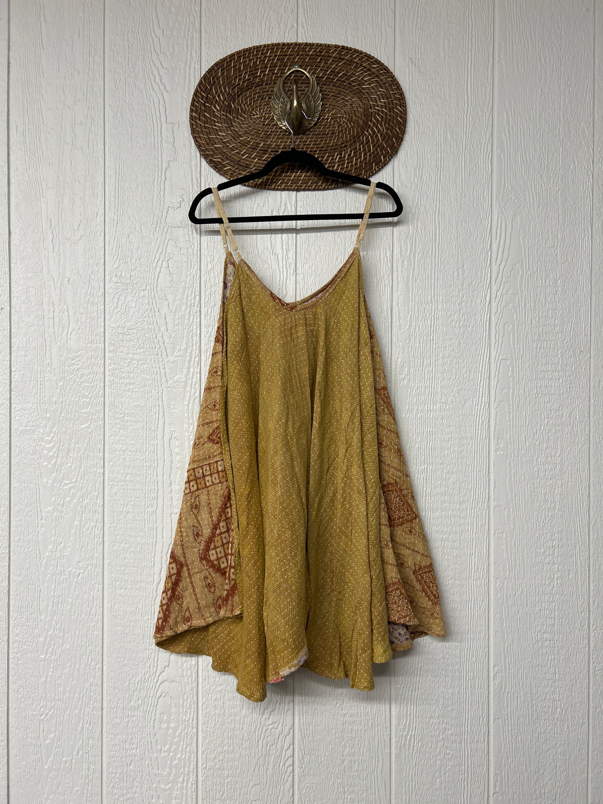 Crafted from our ultra lux cotton Kantha stitch sari the Moonchild Mini Dress features adjustable straps, interior pockets and an exaggerated sweep for extra dimension. A total vibe whether you wear as a layering piece under your favorite Kantha Bae pieces or on it's own.