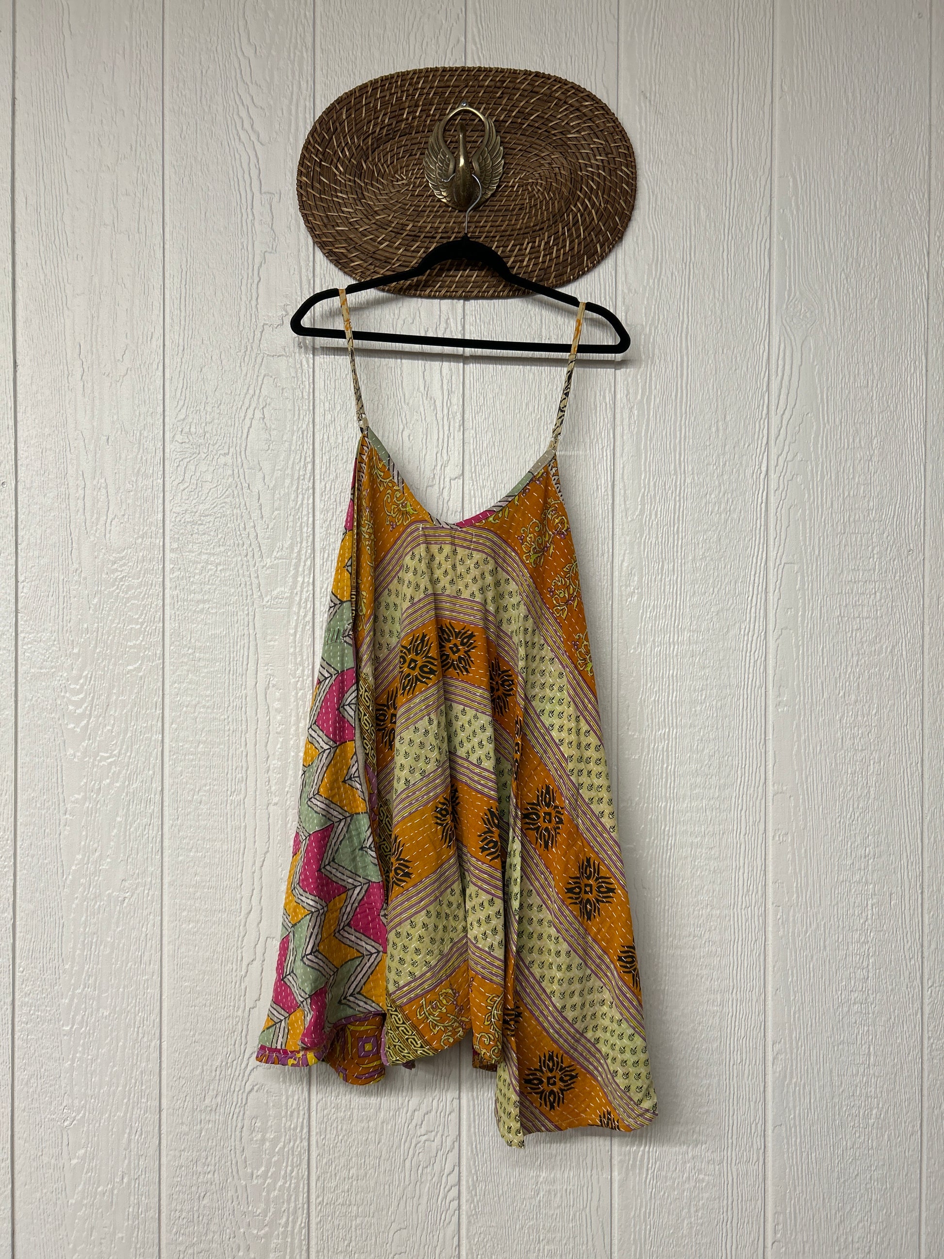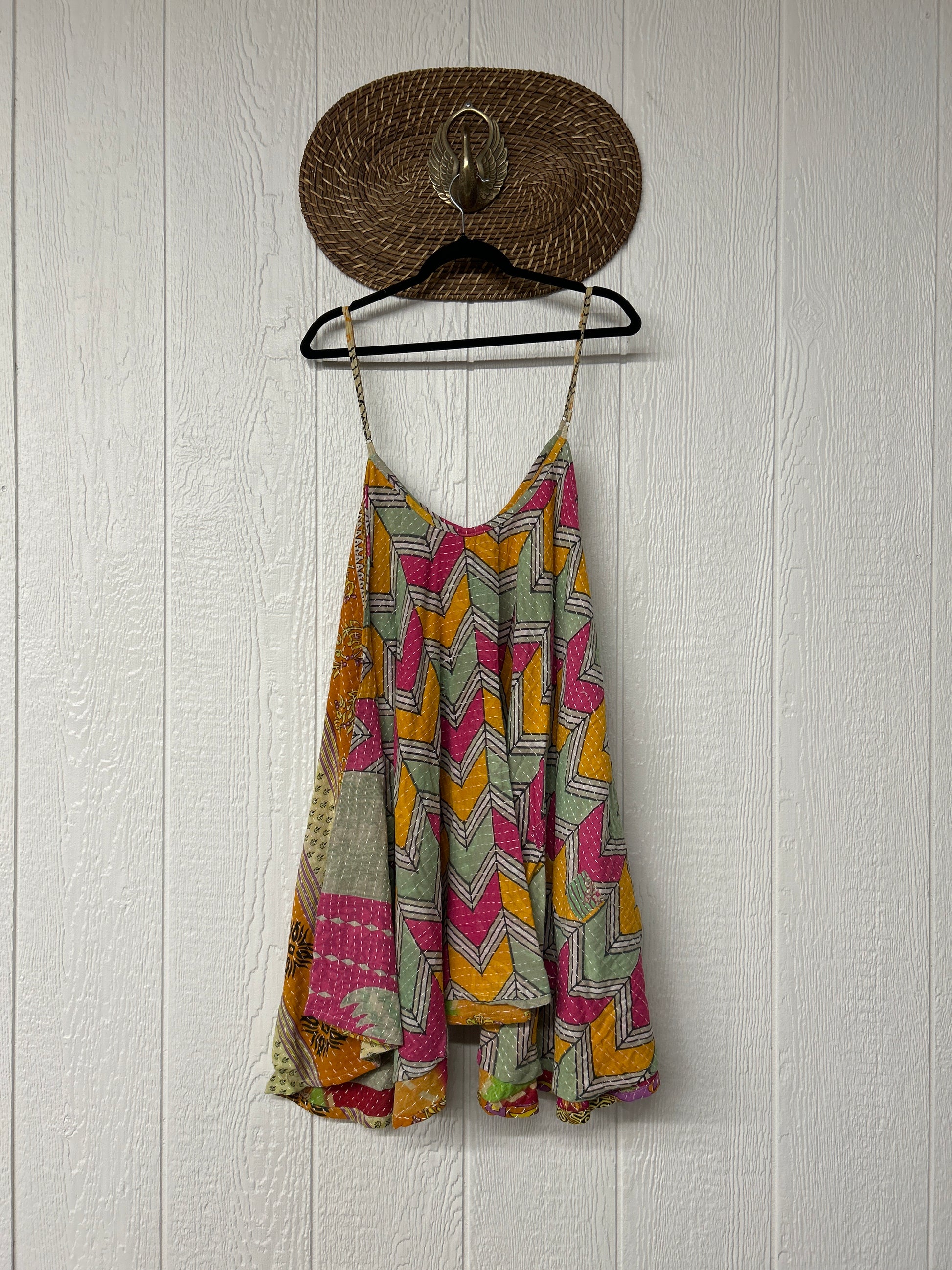 Crafted from our ultra lux cotton Kantha stitch sari the Moonchild Mini Dress features adjustable straps, interior pockets and an exaggerated sweep for extra dimension. A total vibe whether you wear as a layering piece under your favorite Kantha Bae pieces or on it's own.