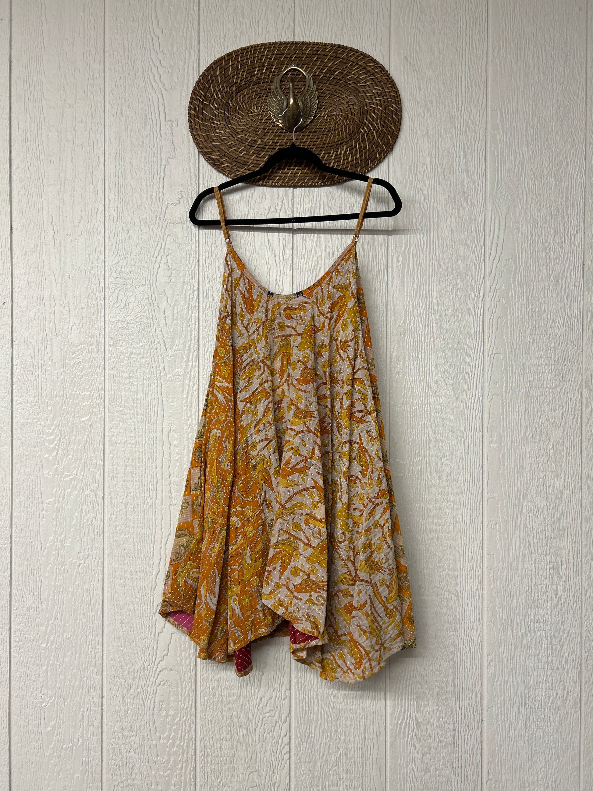 Crafted from our ultra lux cotton Kantha stitch sari the Moonchild Mini Dress features adjustable straps, interior pockets and an exaggerated sweep for extra dimension. A total vibe whether you wear as a layering piece under your favorite Kantha Bae pieces or on it's own.