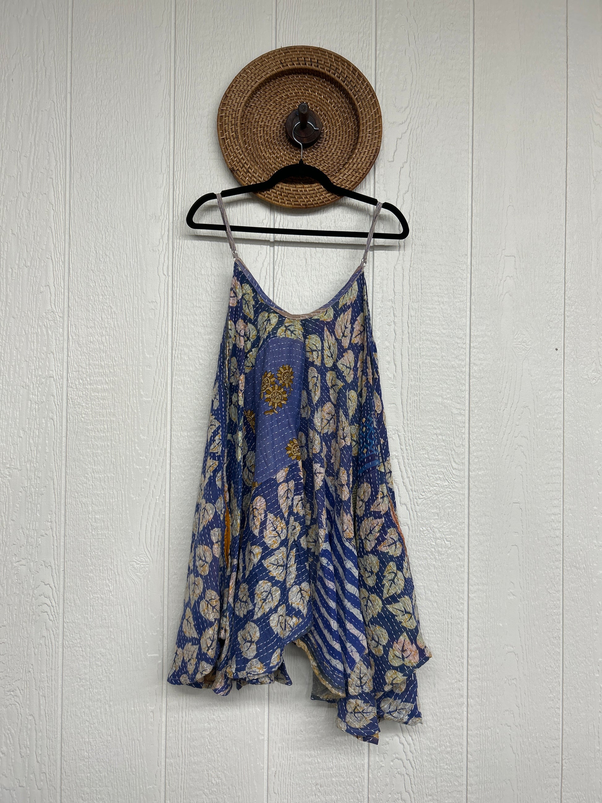 Crafted from our ultra lux cotton Kantha stitch sari the Moonchild Mini Dress features adjustable straps, interior pockets and an exaggerated sweep for extra dimension. A total vibe whether you wear as a layering piece under your favorite Kantha Bae pieces or on it's own.