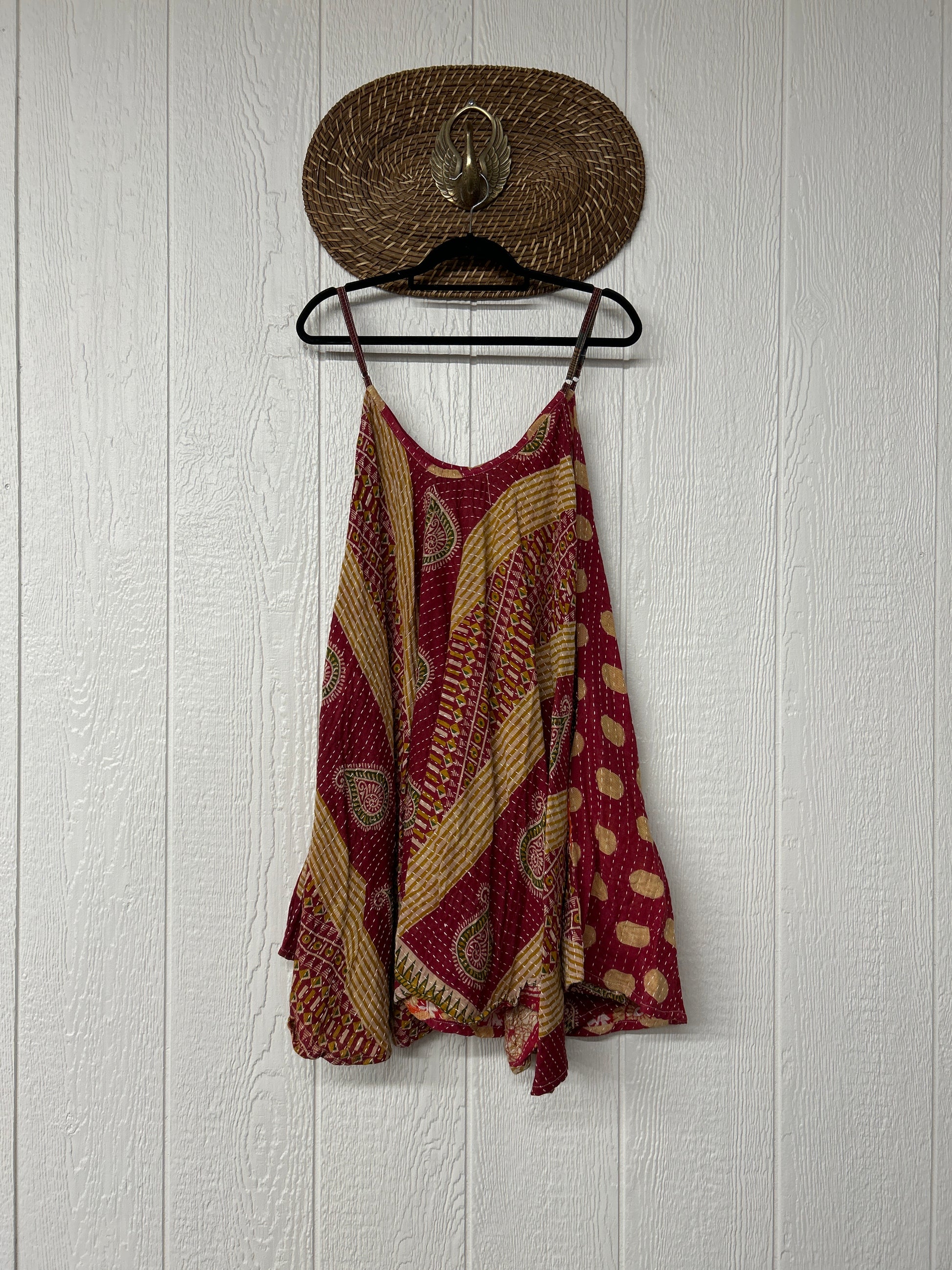Crafted from our ultra lux cotton Kantha stitch sari the Moonchild Mini Dress features adjustable straps, interior pockets and an exaggerated sweep for extra dimension. A total vibe whether you wear as a layering piece under your favorite Kantha Bae pieces or on it's own.