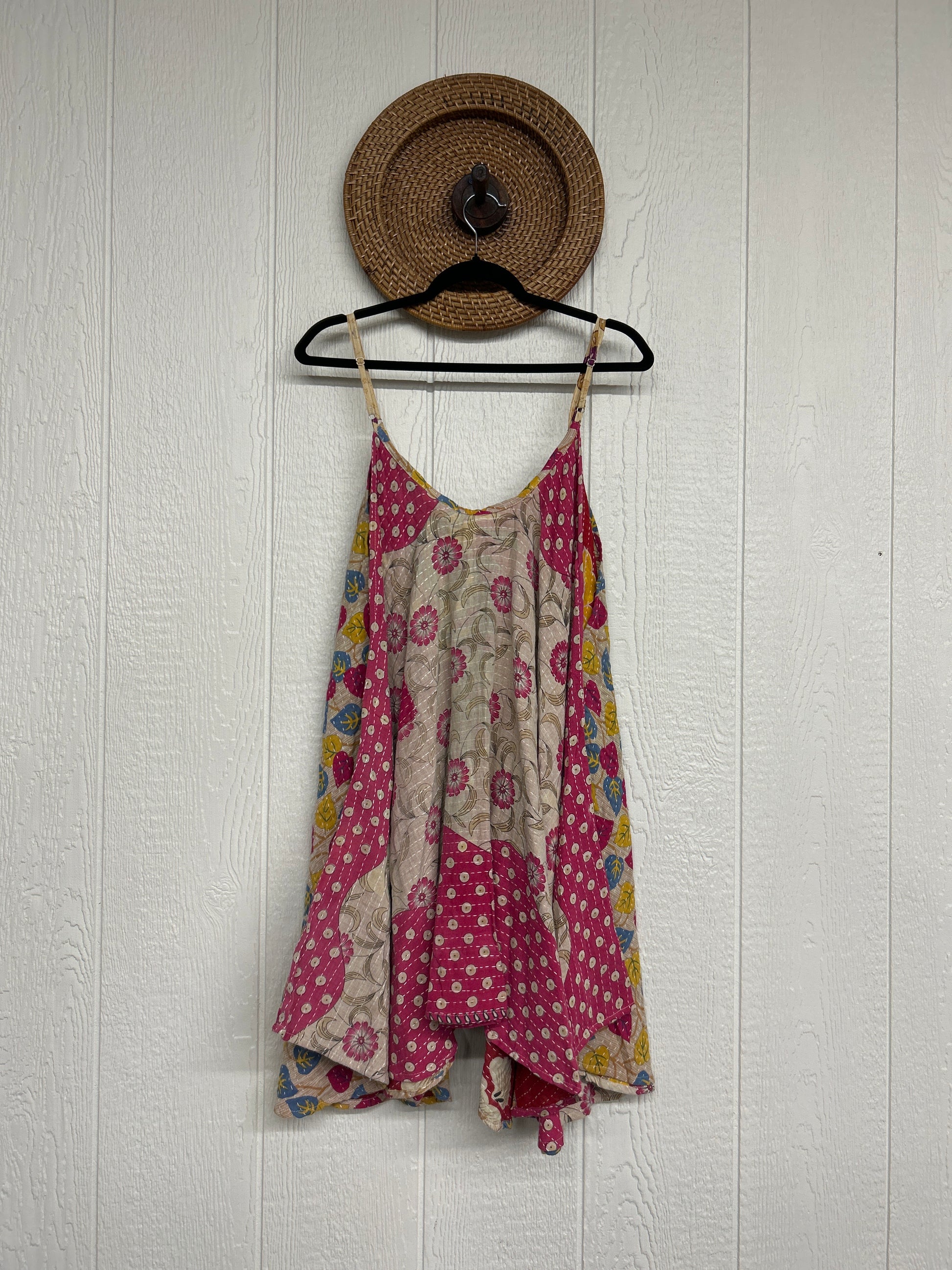 Crafted from our ultra lux cotton Kantha stitch sari the Moonchild Mini Dress features adjustable straps, interior pockets and an exaggerated sweep for extra dimension. A total vibe whether you wear as a layering piece under your favorite Kantha Bae pieces or on it's own.