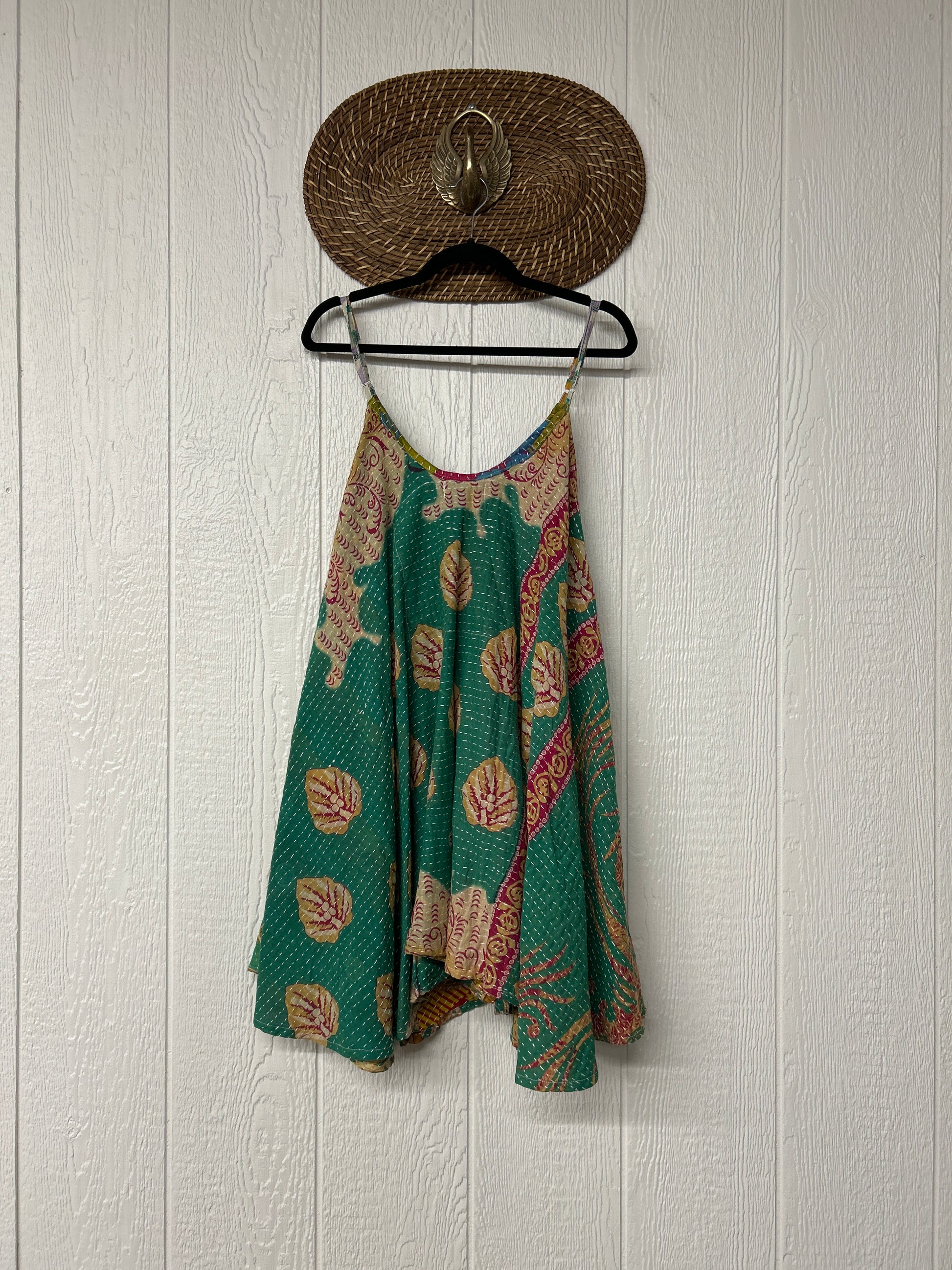Crafted from our ultra lux cotton Kantha stitch sari the Moonchild Mini Dress features adjustable straps, interior pockets and an exaggerated sweep for extra dimension. A total vibe whether you wear as a layering piece under your favorite Kantha Bae pieces or on it's own.