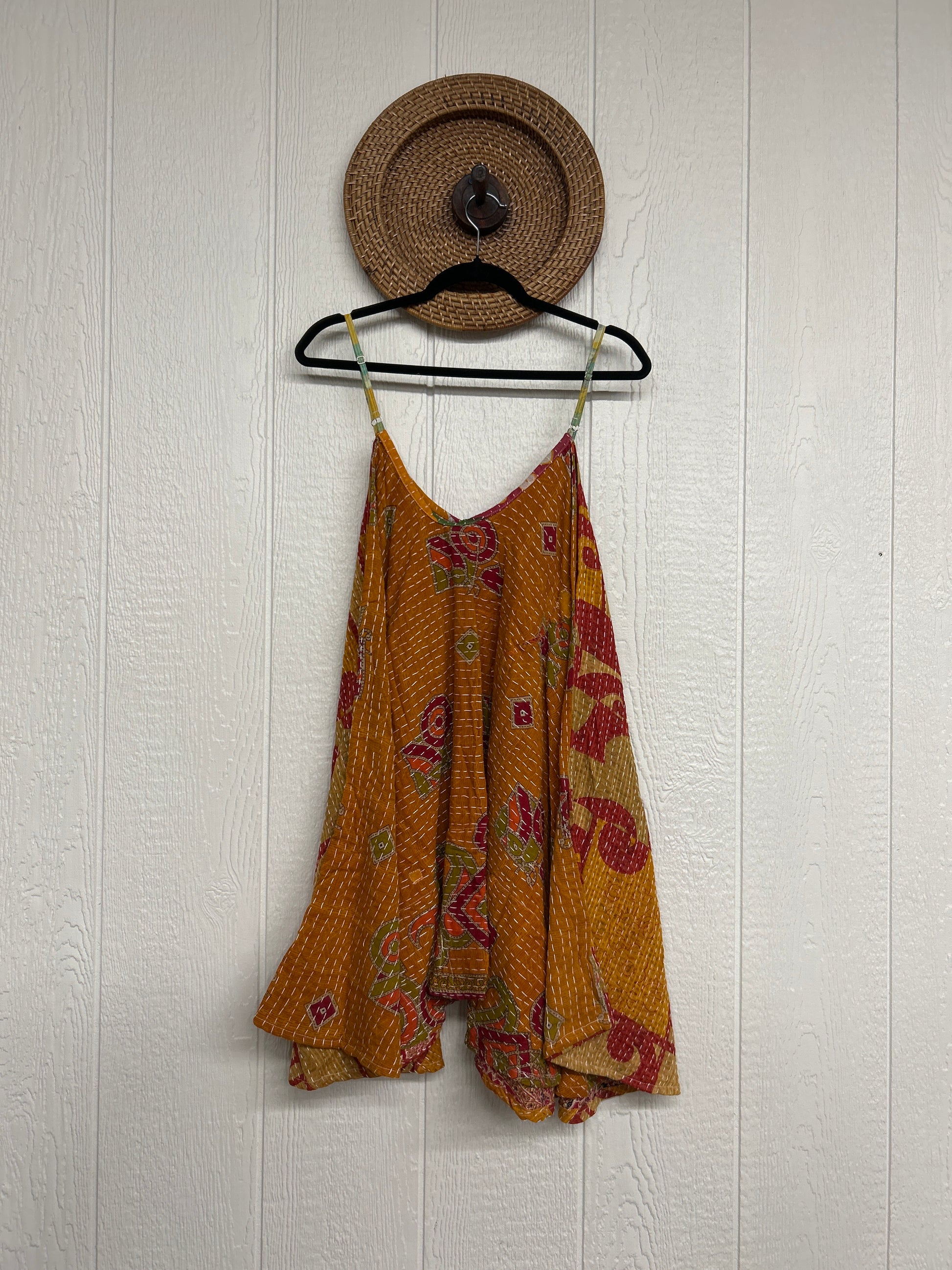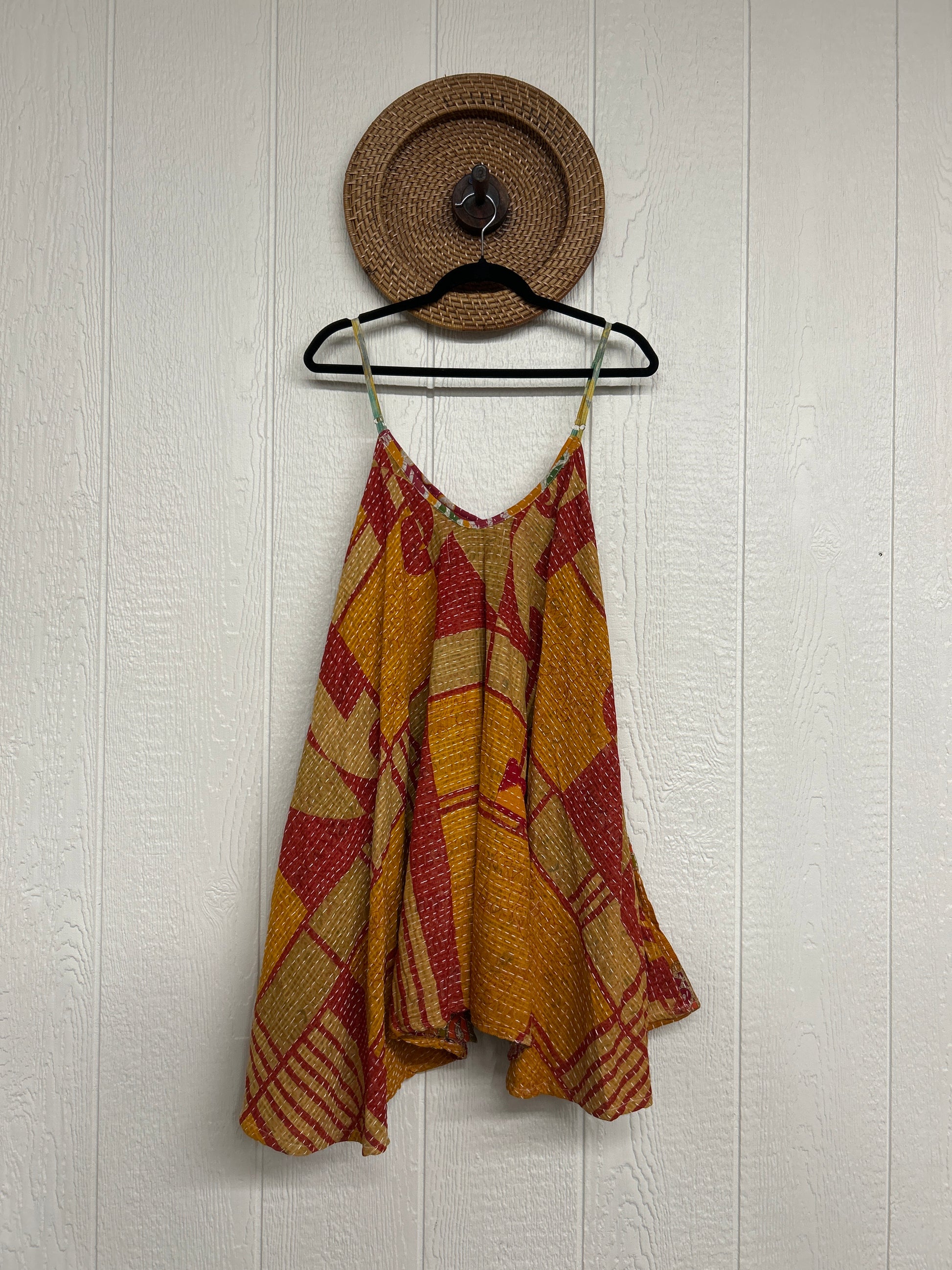 Crafted from our ultra lux cotton Kantha stitch sari the Moonchild Mini Dress features adjustable straps, interior pockets and an exaggerated sweep for extra dimension. A total vibe whether you wear as a layering piece under your favorite Kantha Bae pieces or on it's own.