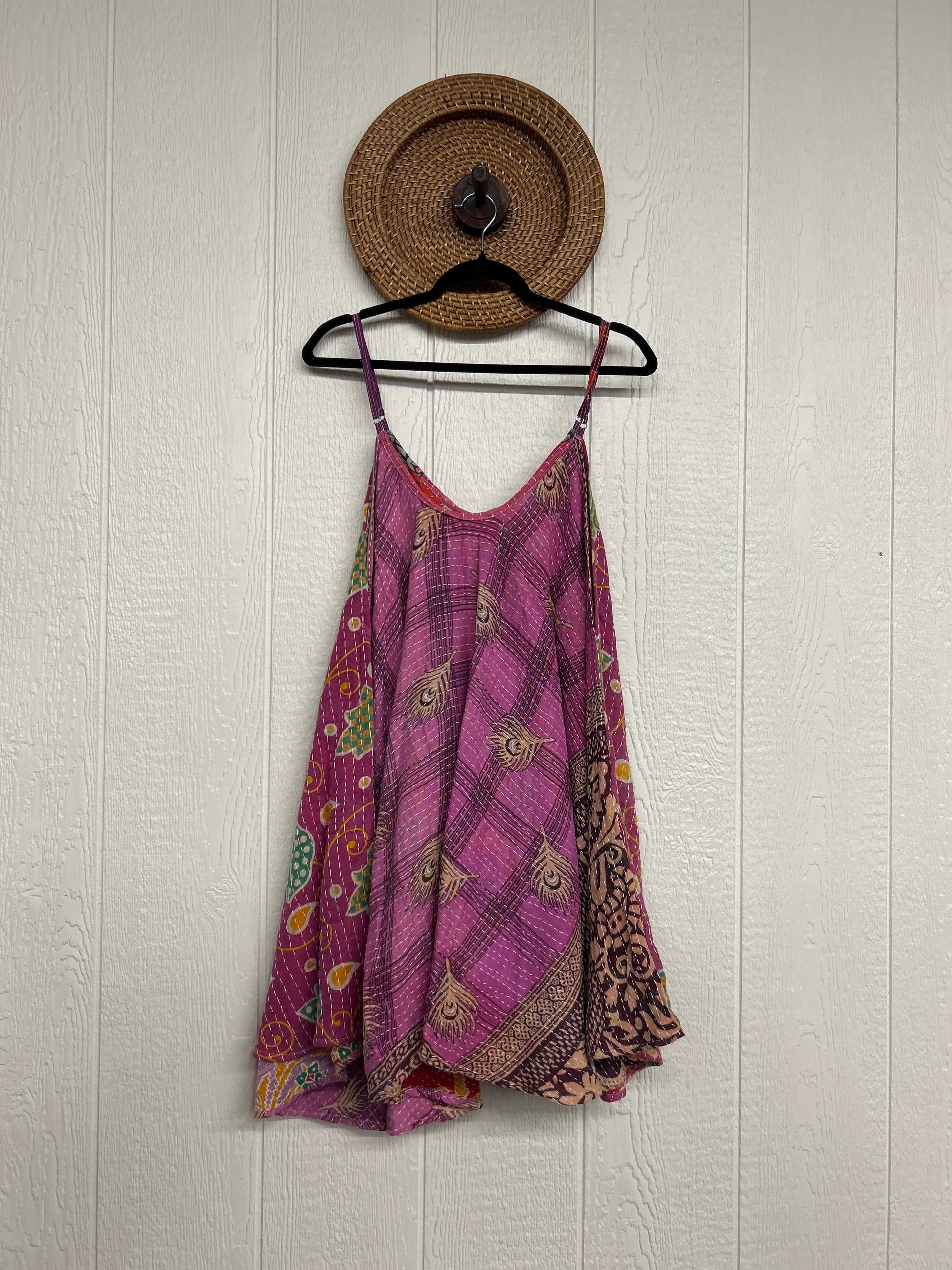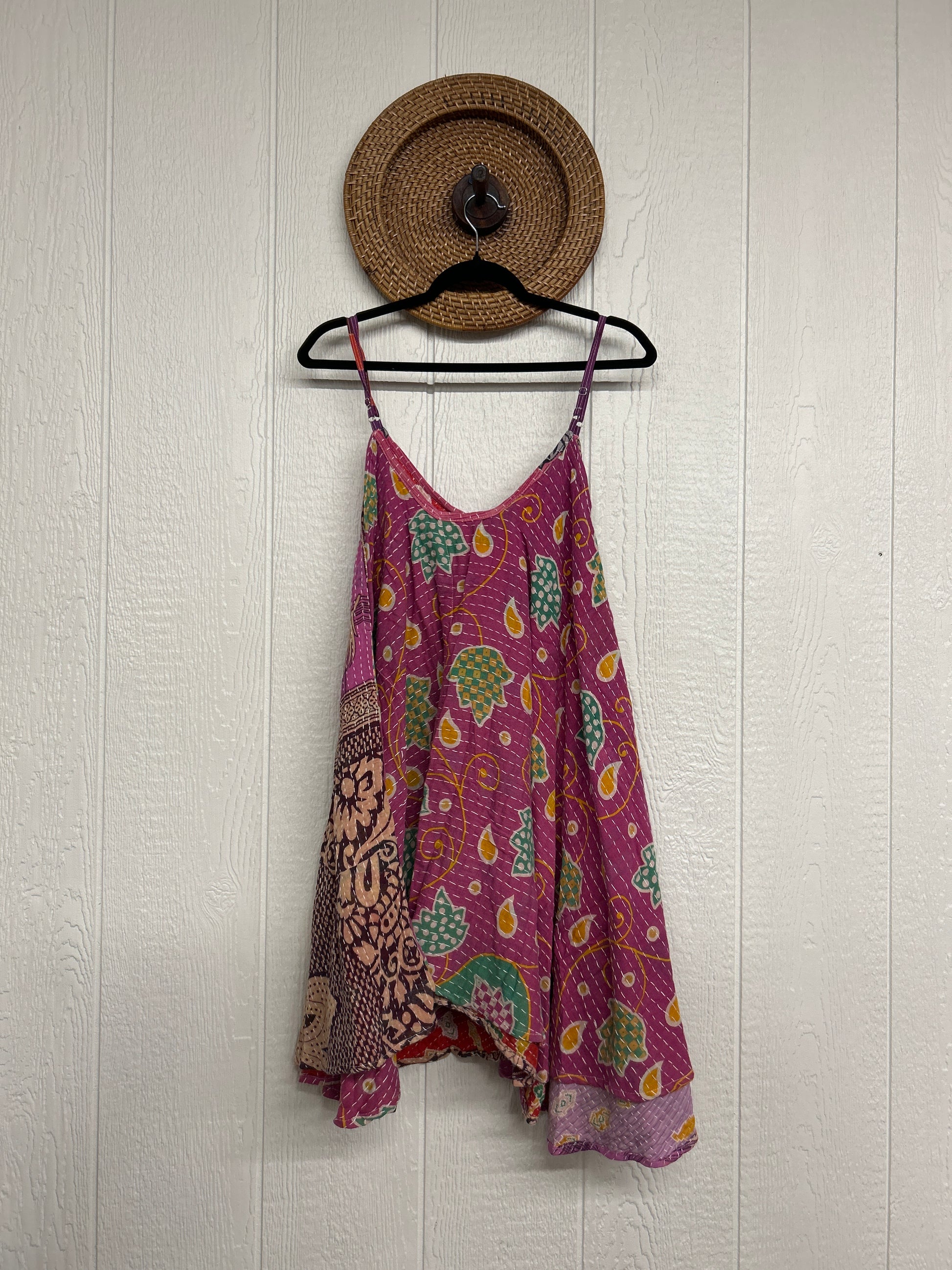 Crafted from our ultra lux cotton Kantha stitch sari the Moonchild Mini Dress features adjustable straps, interior pockets and an exaggerated sweep for extra dimension. A total vibe whether you wear as a layering piece under your favorite Kantha Bae pieces or on it's own.