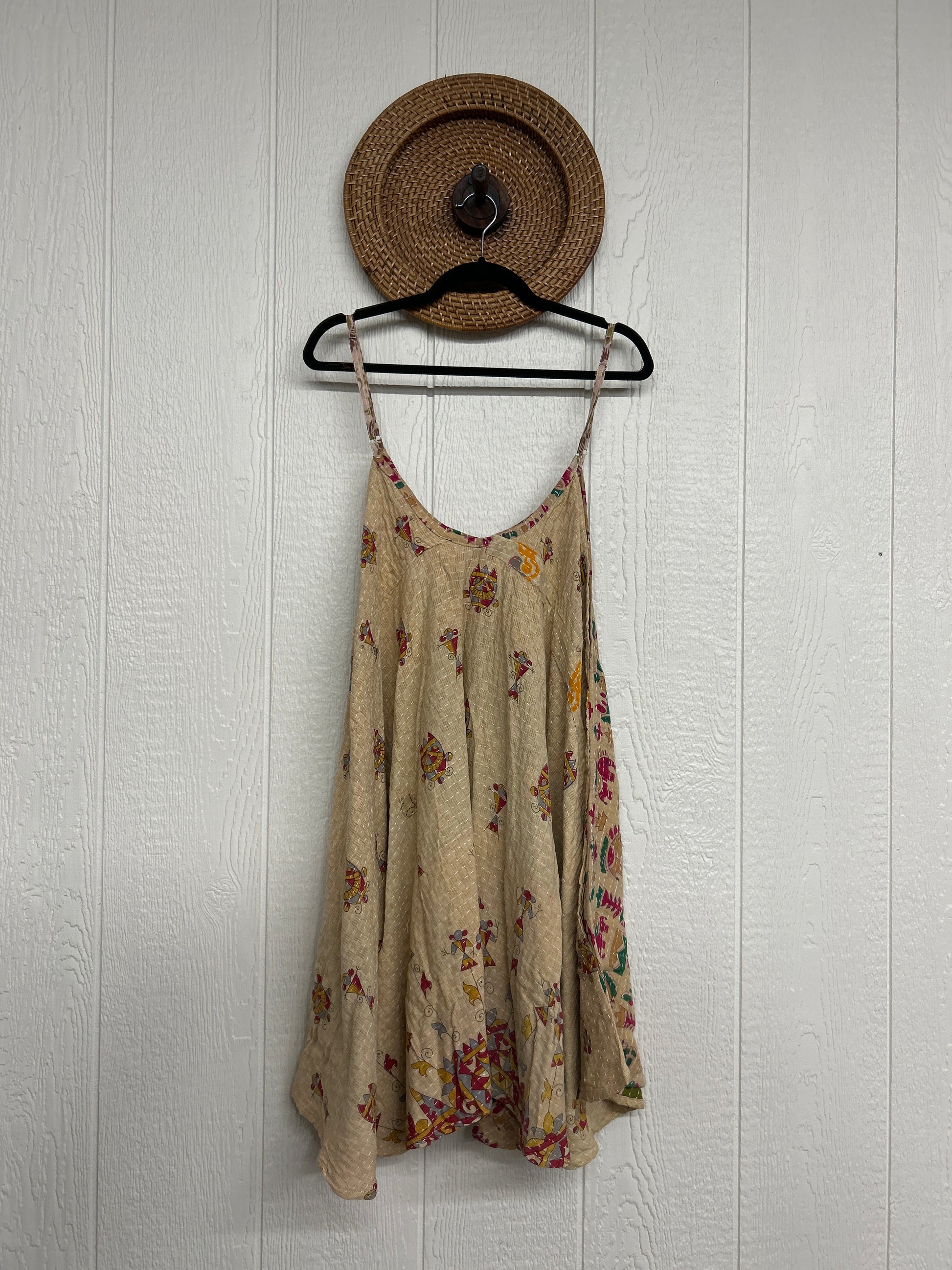 Crafted from our ultra lux cotton Kantha stitch sari the Moonchild Mini Dress features adjustable straps, interior pockets and an exaggerated sweep for extra dimension. A total vibe whether you wear as a layering piece under your favorite Kantha Bae pieces or on it's own.
