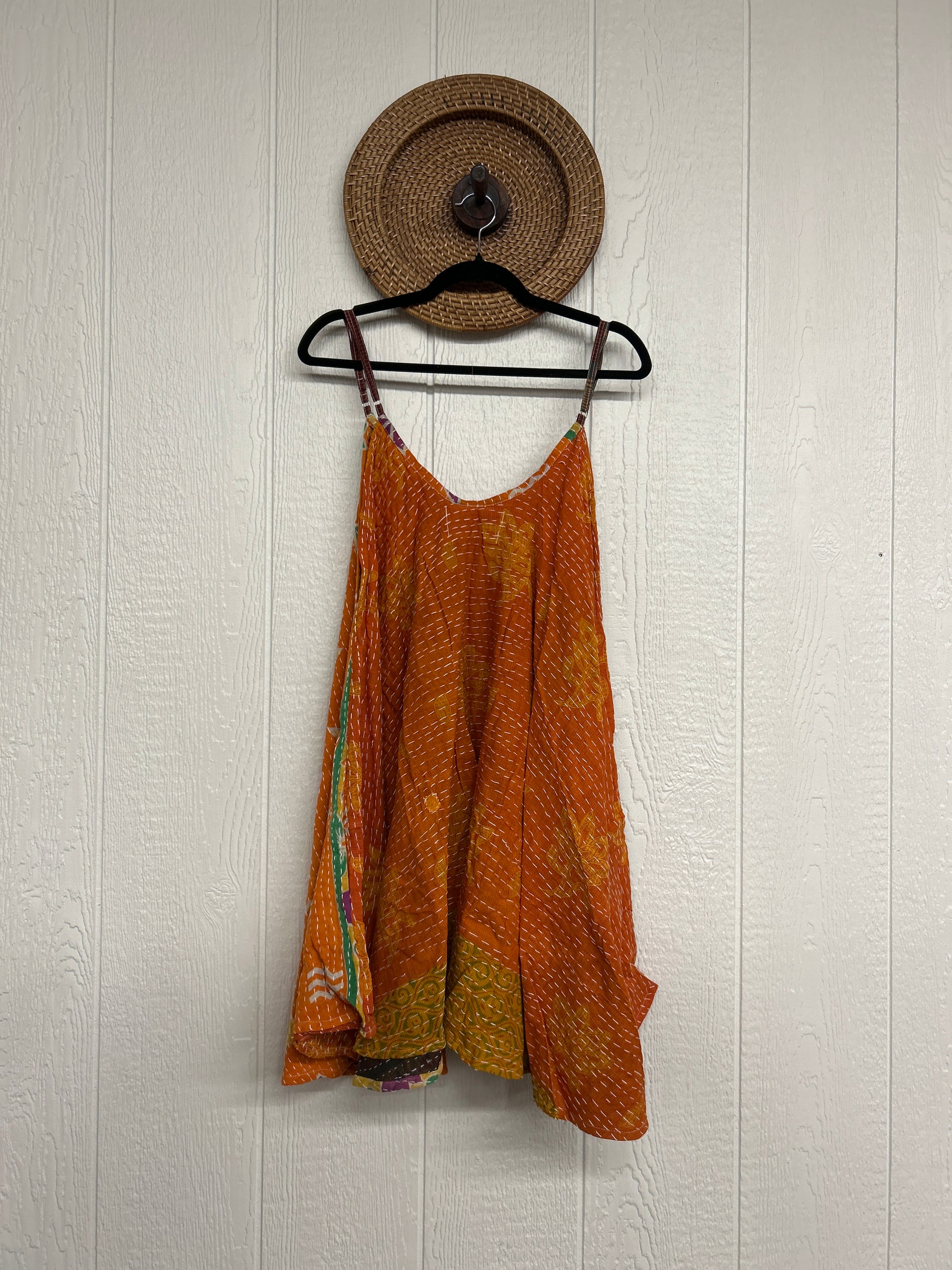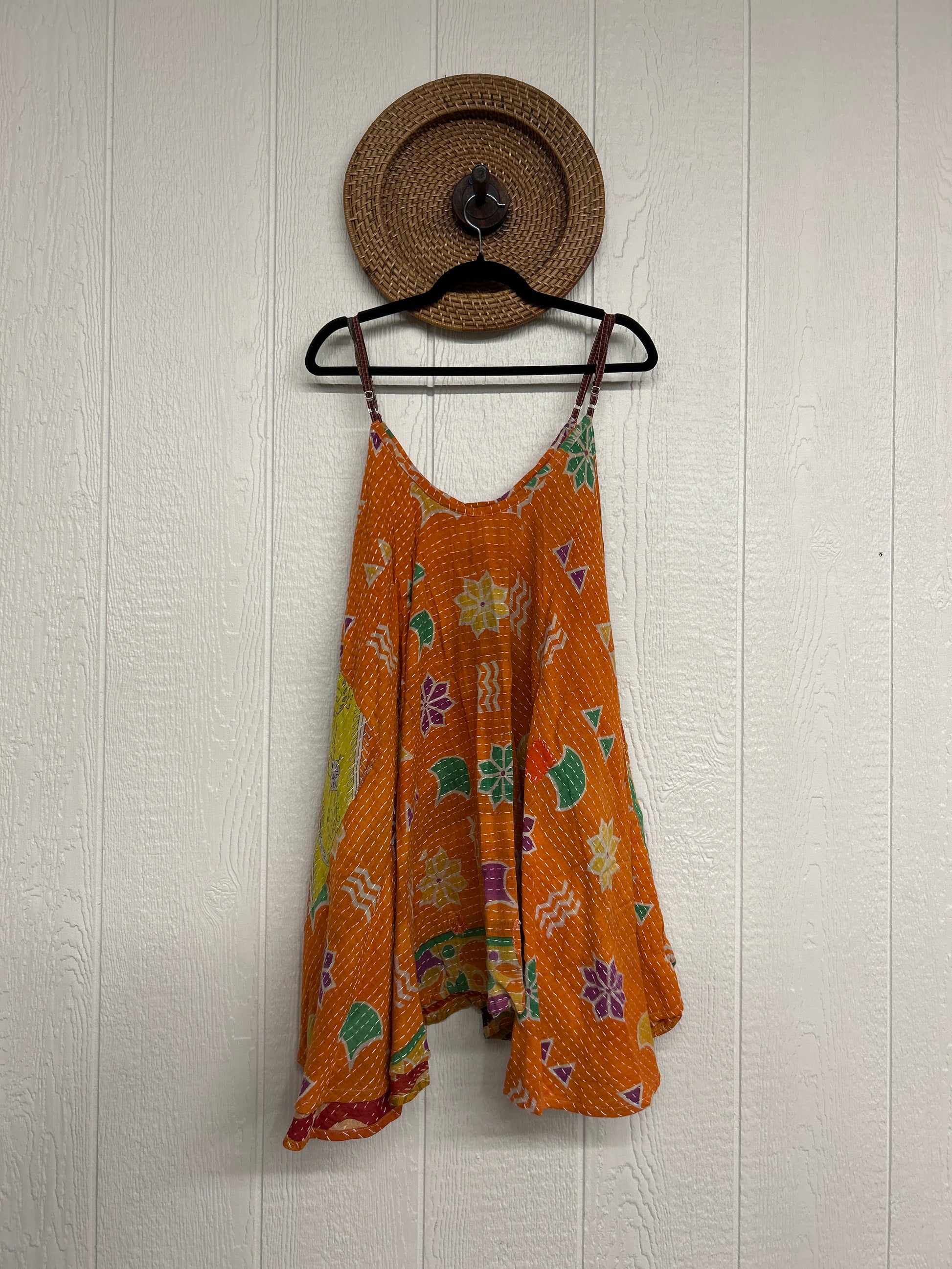 Crafted from our ultra lux cotton Kantha stitch sari the Moonchild Mini Dress features adjustable straps, interior pockets and an exaggerated sweep for extra dimension. A total vibe whether you wear as a layering piece under your favorite Kantha Bae pieces or on it's own.