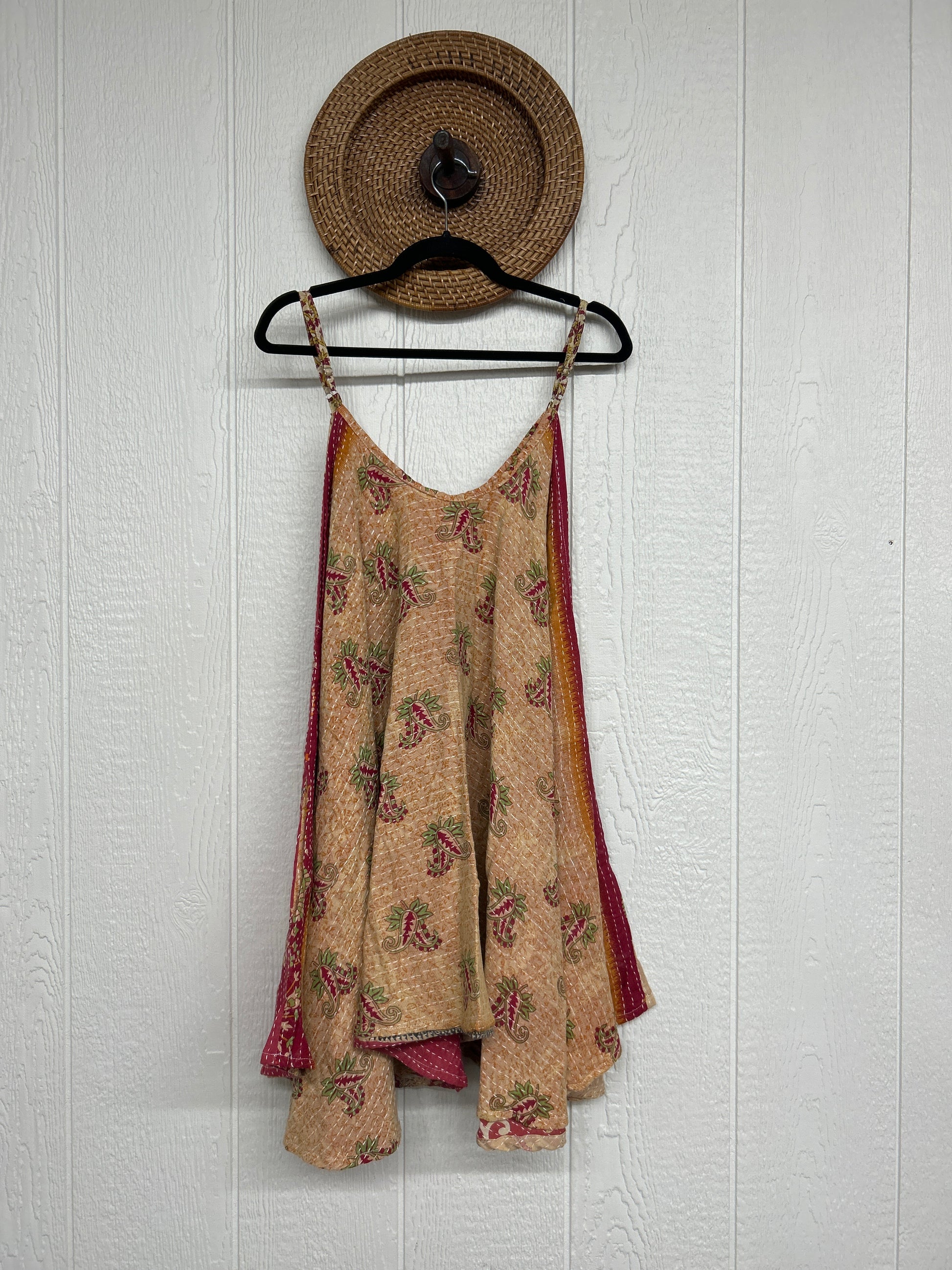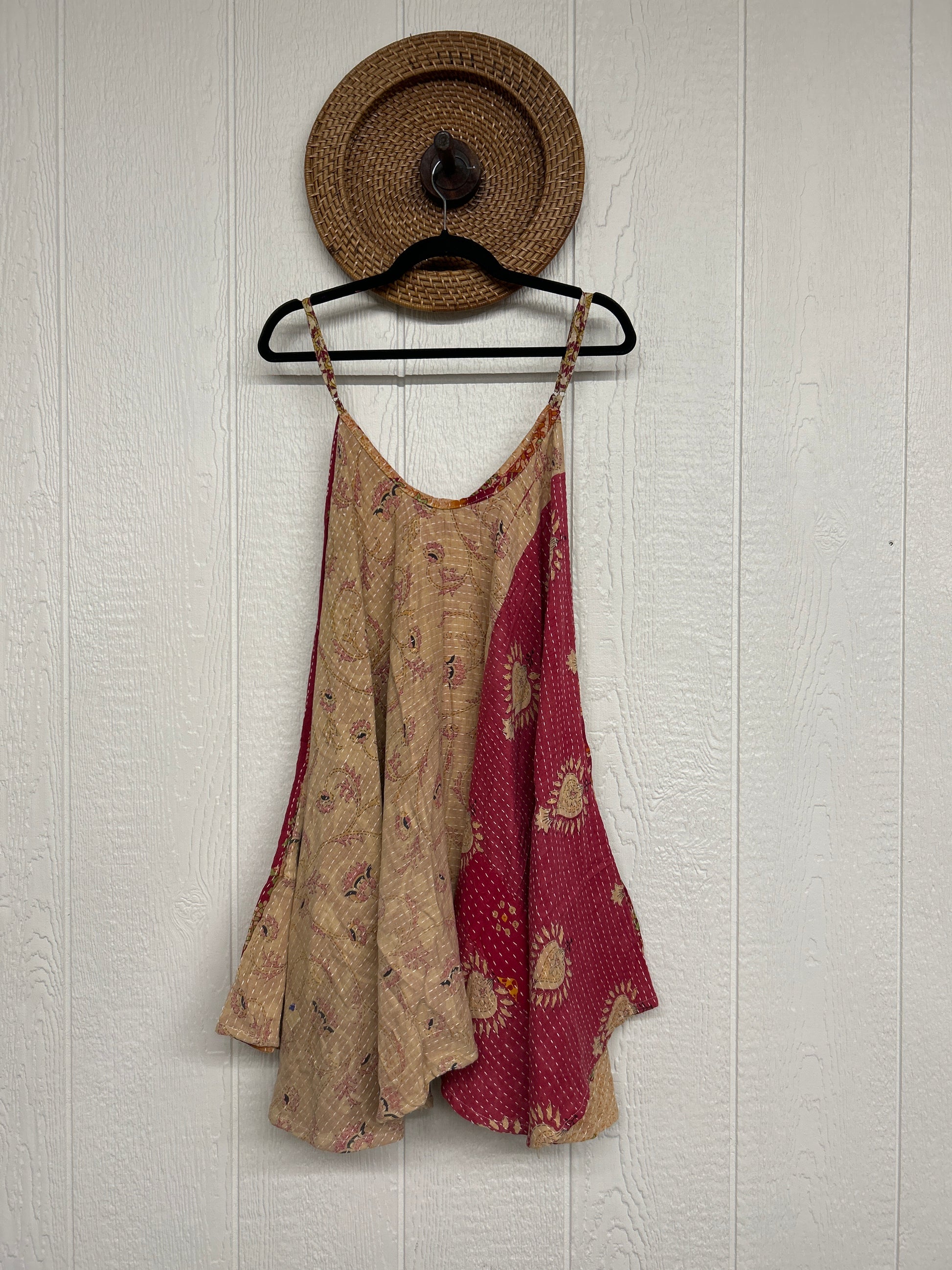 Crafted from our ultra lux cotton Kantha stitch sari the Moonchild Mini Dress features adjustable straps, interior pockets and an exaggerated sweep for extra dimension. A total vibe whether you wear as a layering piece under your favorite Kantha Bae pieces or on it's own.