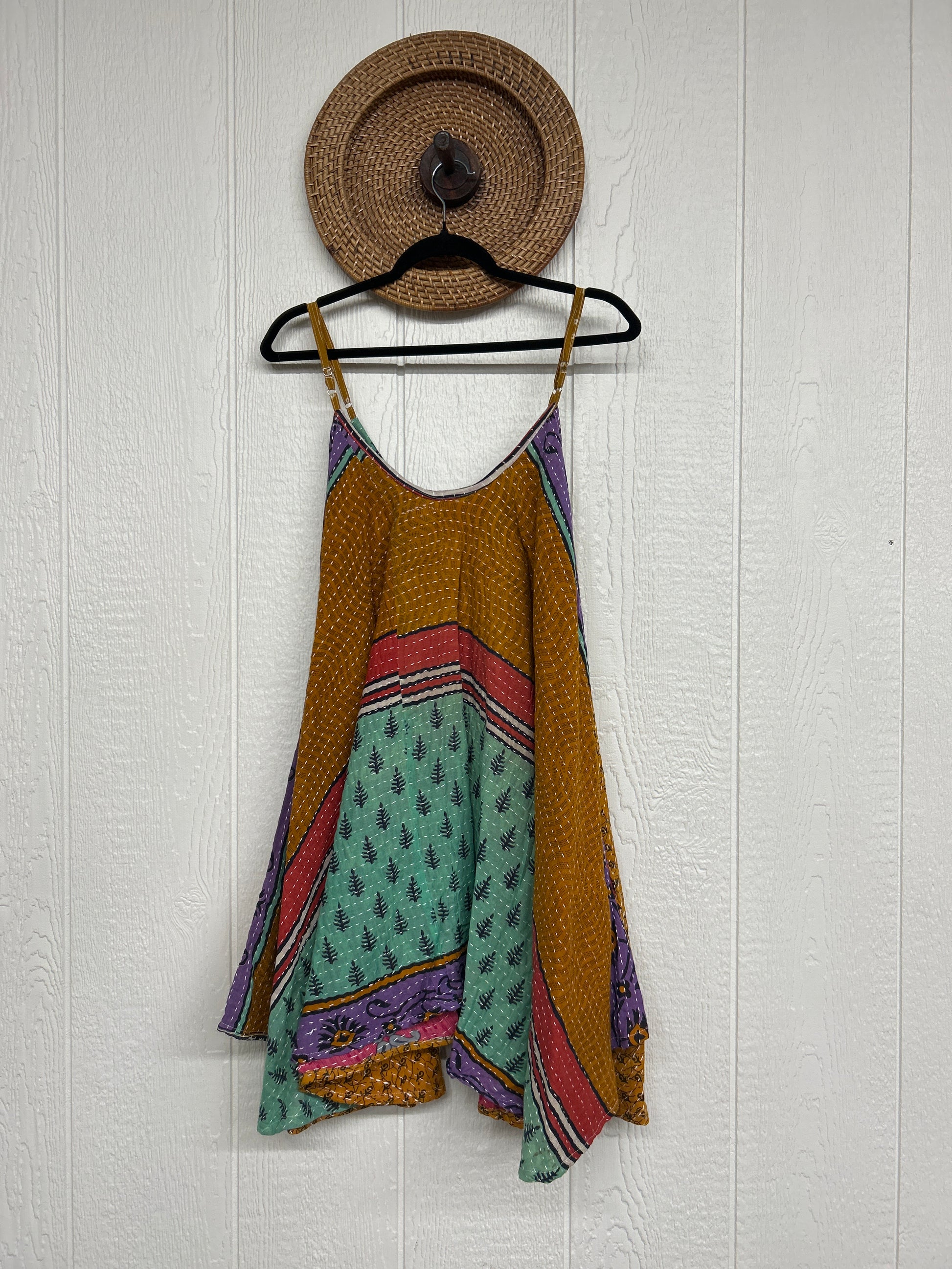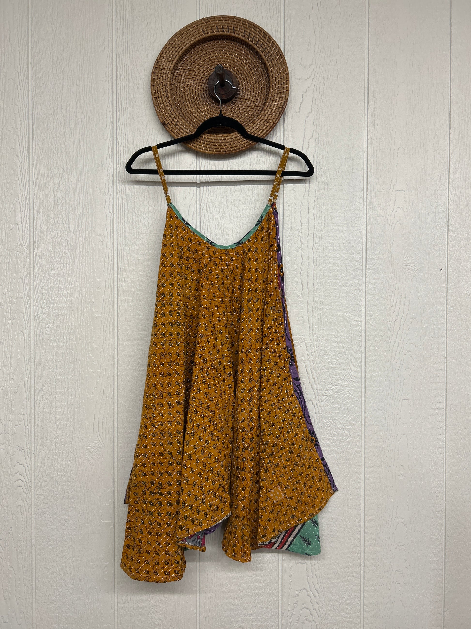 Crafted from our ultra lux cotton Kantha stitch sari the Moonchild Mini Dress features adjustable straps, interior pockets and an exaggerated sweep for extra dimension. A total vibe whether you wear as a layering piece under your favorite Kantha Bae pieces or on it's own.